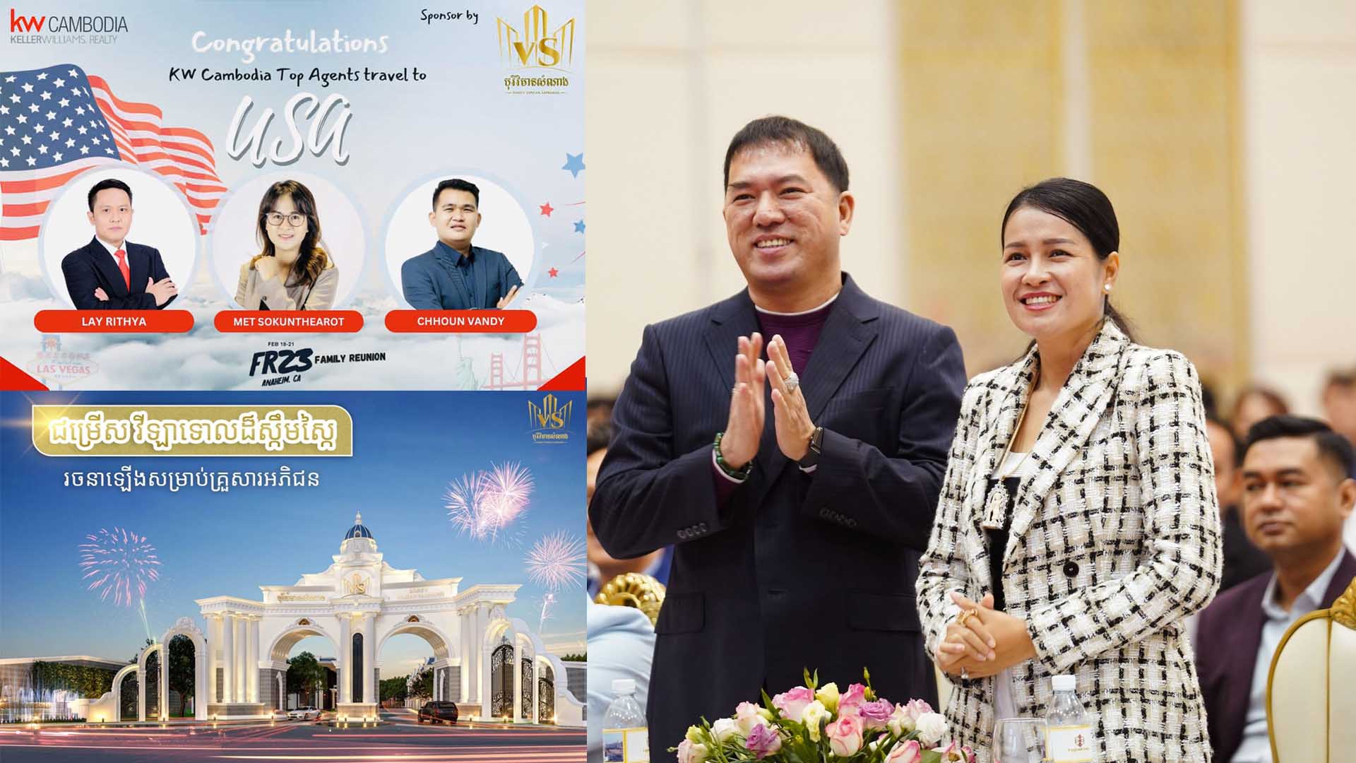 ឧកញ៉ាបណ្ឌិត គីម ហ៊ាង បញ្ជាក់ថា៖ “ក្រុមហ៊ុន នឹងចេញថ្លៃចំណាយ ១០០% ក្នុងការនាំបុគ្គលិកទាំងបីនាក់ ខាងលើ ទៅចូលរួមសន្និបាតលំដាប់ថ្នាក់អន្ដជាតិរបស់ KW Worldwide (Family Reunion 2023) ដោយមានសមាជិក KW មកពី ៥២ប្រទេស ជាង ២០ ០០០នាក់ នៅ Anaheim Convention Center, California, USA ចាប់ពីថ្ងៃទី ១៦ ដល់ ២២ កុម្ភះ ២០២៣!”។