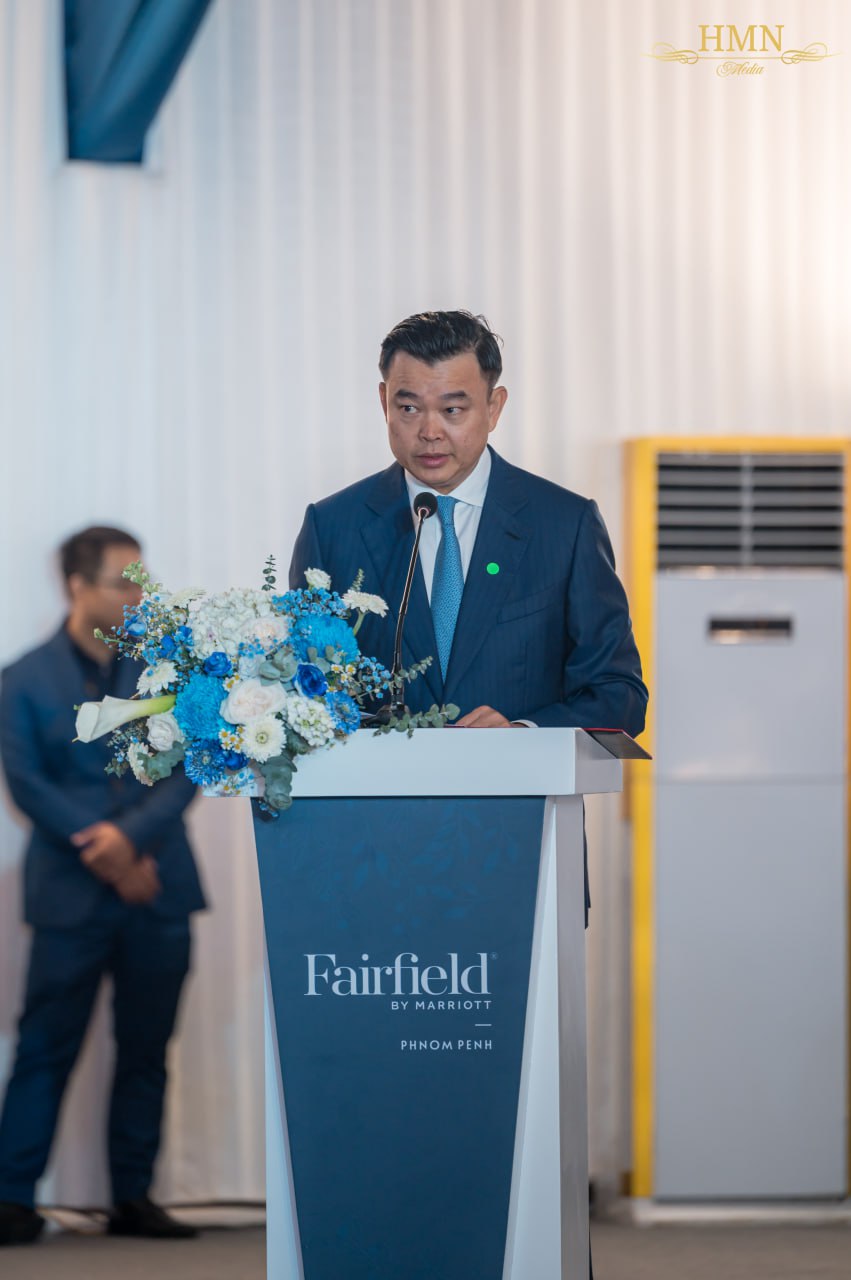 ឯកឧត្តមបណ្ឌិត ថ្លែងថា៖“ស្របពេលដែលរាជរដ្ឋាភិបាលកំពុងចាត់ទុកការអភិវឌ្ឍធនធានមនុស្សជាអាទិភាពចម្បង ដើម្បីឆ្លើយតបទៅនឹងតម្រូវការទីផ្សារក្នុងពេលបច្ចុប្បន្ន និងអនាគត, វត្តមានរបស់សណ្ឋាគារ Fairfield by Marriott Phnom Penh លំដាប់អន្តរជាតិមួយនេះ គឺអាចនឹងចូលរួមពង្រឹងធនធានមនុស្សកម្ពុជា តាមរយៈការជំរុញការបណ្តុះបណ្តាលជំនាញវិជ្ជាជីវៈ, ការបណ្តុះបណ្តាលជំនាញថ្មី (Re-skilling) និងការបង្កើនចំណេះដឹងបន្ថែម (Upskilling) ដល់បុគ្គលិក-និយោជិតរបស់ខ្លួន តាមរយៈការផ្តល់ការគាំទ្រដល់សិស្ស-និស្សិត ដែលបានបញ្ចប់ការសិក្សាពីសាកលវិទ្យាល័យ ឬវិទ្យាស្ថានបណ្ដុះបណ្ដាលជំនាញវិជ្ជាជីវៈនានានៅកម្ពុជា ឱ្យទទួលបាននូវឱកាសការងារ ឬឱកាសចុះកម្មសិក្សា ដើម្បីទទួលបានចំណេះដឹង និងបទពិសោធន៍ជាលក្ខណៈស្តង់ដារអន្តរជាតិ។”