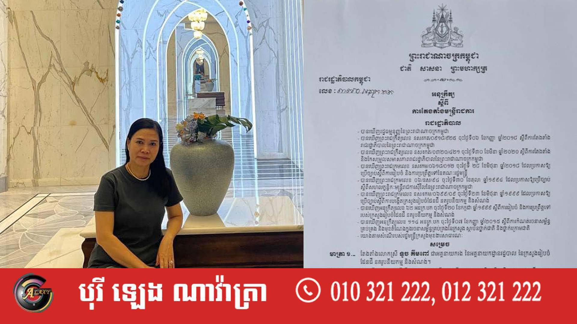 សម្តេចតេជោ ហ៊ុន សែន នាយករដ្ឋមន្ត្រីនៃព្រះរាជាណាចក្រកម្ពុជា បានចេញអនុក្រឹត្យតែងតាំងលោកស្រី ទូច គីមពៅ ជាអគ្គនាយករង នៃអគ្គនាយកដ្ឋានរដ្ឋបាល នៃក្រសួងរៀបចំដែនដី នគរូបនីយកម្ម និងសំណង់ តាមរយៈអនុក្រឹត្យលេខ ៣៧០ អនក្រ.តត កាលពីថ្ងៃទី១០ ខែមេសា ឆ្នាំ២០២៣។
