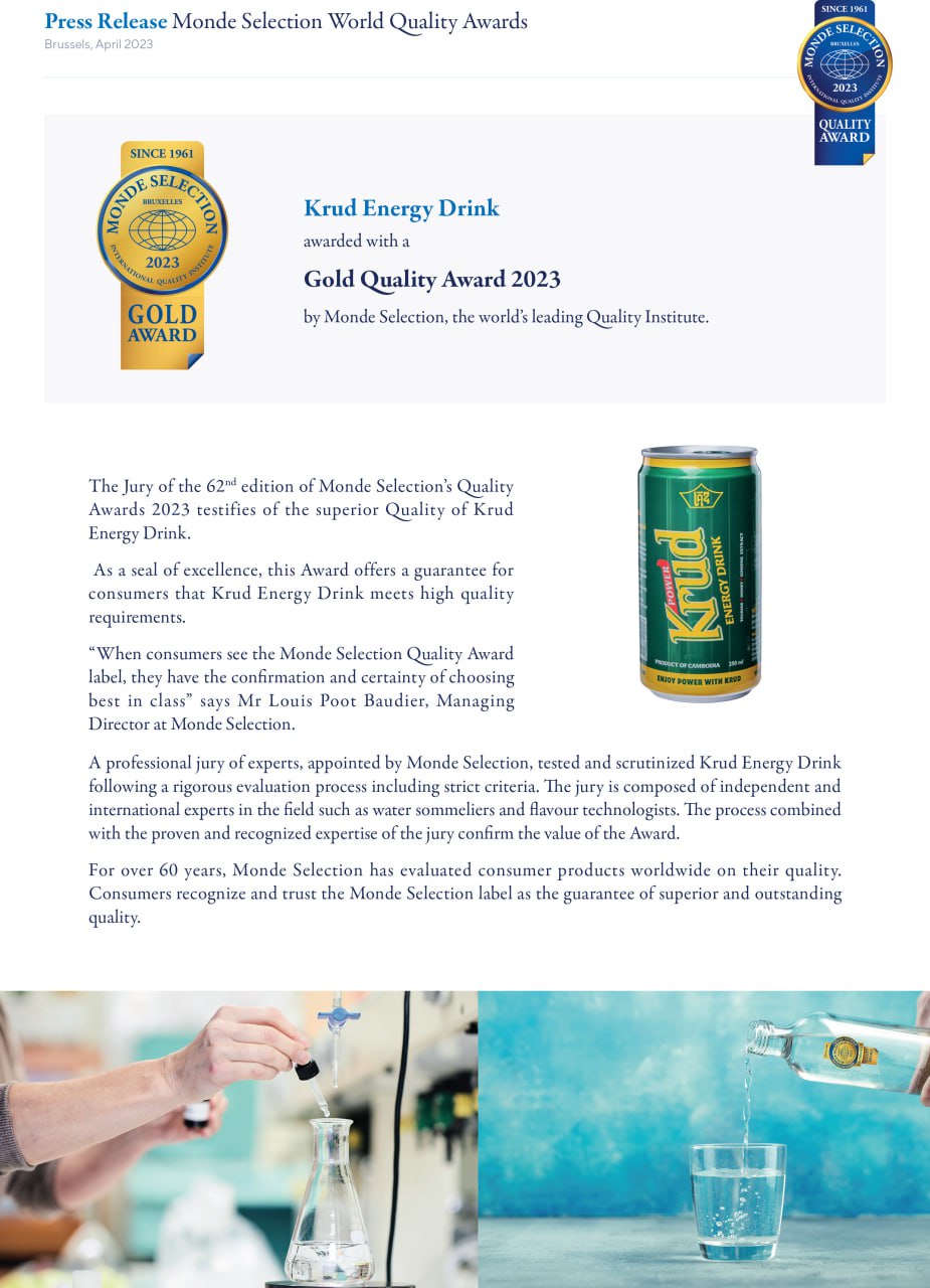 អបអរភេសជ្ជៈប៉ូវកម្លាំងគ្រុឌ គ្រុឌអាយស៍ និងភេសជ្ជៈ វី-អាកទីវ ទាំងបីជម្រើស ឈ្នះមេដាយមាសពី Monde Selection ប្រចាំឆ្នាំ ២០២៣