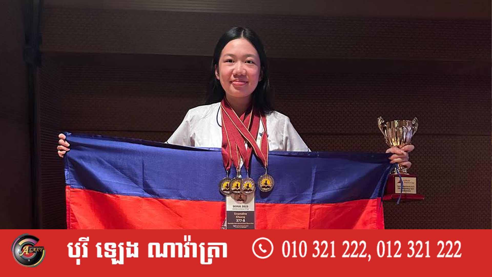 កូនស្រីអភិបាលរាជធានីភ្នំពេញ លោក ឃួង ស្រេង ត្រូវជាចៅប្រសារលោក ជា សុផារ៉ា ឈ្នះបានមេដាយមាស ប្រាក់ ក្នុងវិញ្ញាសារប្រកួតផ្សេងៗគ្នា នៅប្រទេសអាមេរិក និងកូរ៉េខាងត្បូង កាលថ្ងៃទី១៩ ខែកក្កដាឆ្នាំ២០២៣នេះ។