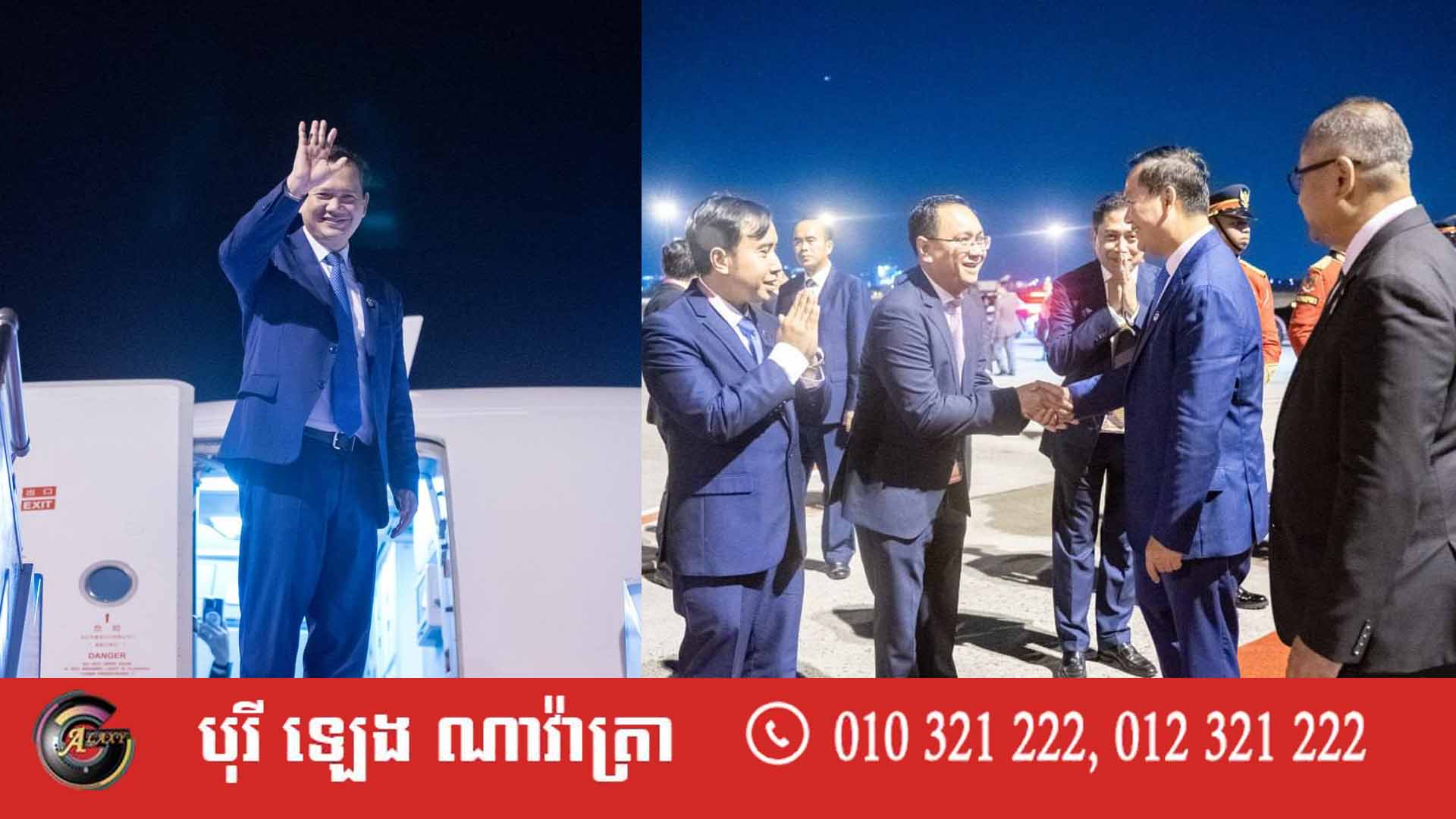 សម្តេចមហាបវរធិបតី ហ៊ុន ម៉ាណែត នាយករដ្ឋមន្ត្រីនៃកម្ពុជា បានកំពុងដឹកនាំគណៈប្រតិភូរាជរដ្ឋាភិបាល ធ្វើមាតុភូមិនិវត្តន៍វិញ បន្ទាប់ពីទទួលបានលទ្ធផលជោគជ័យសម្រាប់ជាតិ និងប្រជាជនកម្ពុជា ក្នុងកិច្ចប្រជុំកំពូលអាស៊ានលេីកទី ៤៣ និងកិច្ចប្រជុំកំពូលពាក់ព័ន្ធ ពីទីក្រុងហ្សាការតា ប្រទេសឥណ្ឌូនេស៊ី