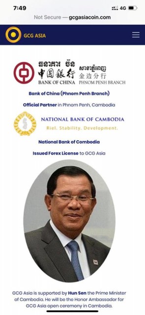 «តាមព័ត៌មានពីស្ថានទូតឥណ្ឌូណេស៊ីនៅកម្ពុជាគឺបញ្ជាក់ថា GCG Asia ជាក្រុមហ៊ុនរកស៊ីមិនត្រឹមត្រូវហើយត្រូវបានដាក់ចូលក្នុងបញ្ជីខ្មៅ( Black List)។សូមប្រជាពលរដ្ឋ និងពាណិជ្ជករទាំងក្នុងនិងក្រៅប្រទេសមានការប្រុងប្រយ័ត្នខ្ពស់ ចំពោះការទិញដូរប្រាក់ដែលគ្មានការអនុញ្ញាត្តិពីរាជរដ្ឋាភិបាលកម្ពុជា»។ នេះជាការបញ្ជាក់របស់នាយករដ្ឋមន្ត្រី ហ៊ុន សែន៕