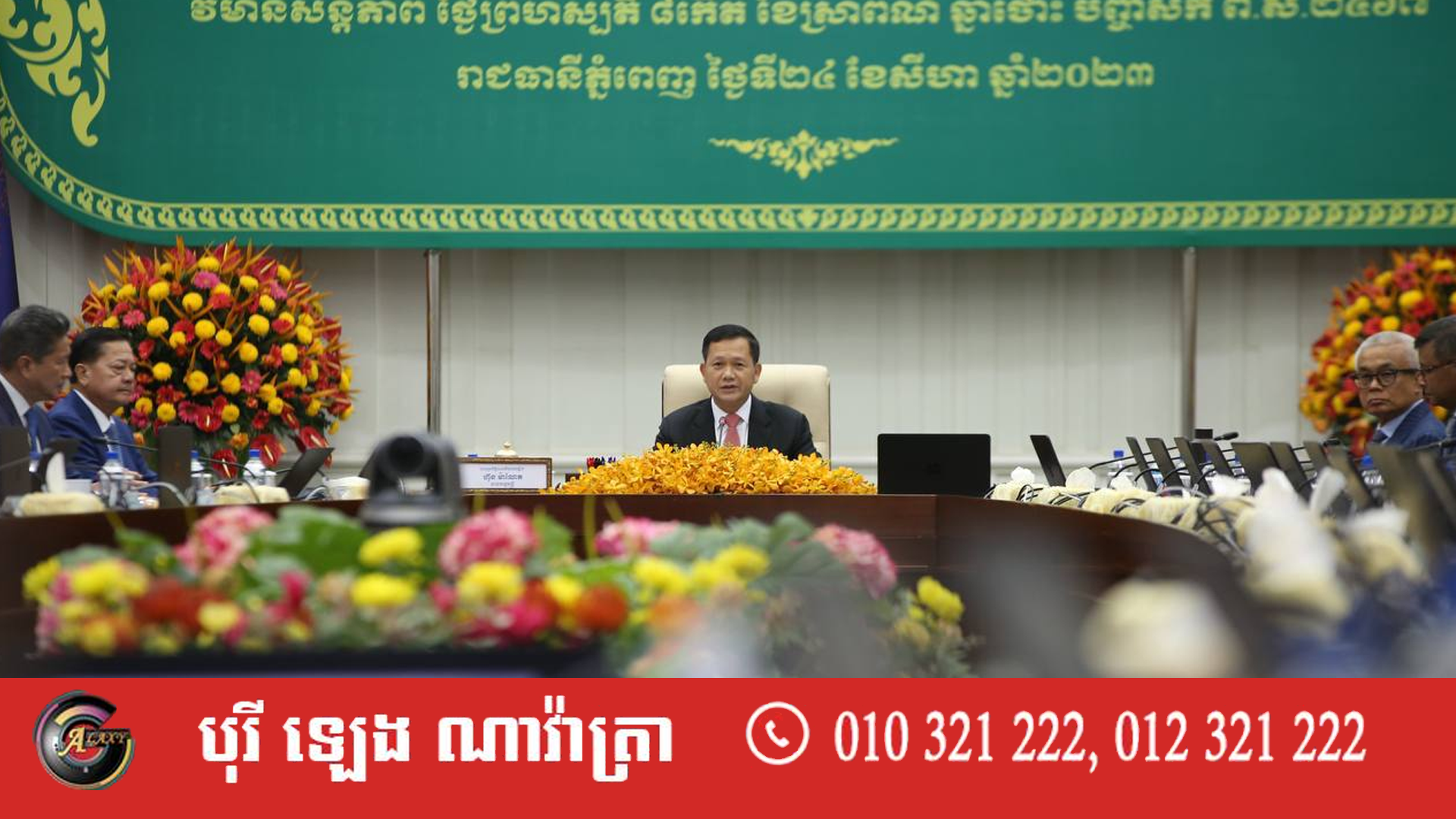 ឯកឧត្តមកិតិ្តទេសាភិបាលបណ្ឌិត ហ៊ុន ម៉ាណែត នាយករដ្ឋមន្ត្រីនៃកម្ពុជា បានថ្លែងឧទ្ទេសនាម «យុទ្ធសាស្ត្របញ្ចកោណ-ដំណាក់កាលទី ១» និង «វិធានការគន្លឹះរបស់រាជរដ្ឋាភិបាលនីតិកាលទី ៧ នៃរដ្ឋសភា» ក្នុងអង្គប្រជុំលើកដំបូង នៃគណៈរដ្ឋមន្ត្រី នីតិកាលទី ៧ នៃរដ្ឋសភា នៅវិមានសន្តិភាព នៅព្រឹកថ្ងៃទី២៤ សីហា ២០២៣។