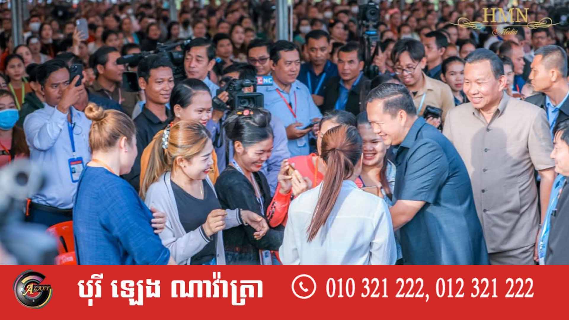 ថ្លែងទៅកាន់ កម្មករ-កម្មការិនី និយោជិត តាមរោងចក្រ សហគ្រាស ជិត២ម៉ឺននាក់ ឯកឧត្តមបណ្ឌិត ហ៊ុន ម៉ាណែត នាយករដ្ឋមន្រ្តី បានឱ្យដឹងថា គោលបំណងចំនួន២ ដែលជួបជាមួយបងប្អូនកម្មករនិយោជិតនាថ្ងៃនេះ ក្នុងនោះទីមួយ គឺអរគុណចំពោះបងប្អូនកម្មករនិយោជិត និងម្ចាស់រោងចក្រនានា ដែលបានគាំទ្រគណបក្សប្រជាជនកម្ពុជា ក៏ដូចជារាជរដ្ឋាភិបាល និងបានចូលរួមជាផ្នែកមួយយ៉ាងសំខាន់ក្នុងការបង្កើតការងារ និងបំពេញការងារក្នុងវិស័យកាត់ដេរនៅក្នុងប្រទេសកម្ពុជាឱ្យមានការរីកចម្រើន។ ចំណែកទី២ រាជរដ្ឋាភិបាលអាណត្តិថ្មីប្ដេជ្ញាចិត្តចំពោះបងប្អូនប្រជាពលរដ្ឋ អំពីកម្មវិធីគោលនយោបាយនានាដែលរាជរដ្ឋាភិបាលបានដាក់ចេញ។