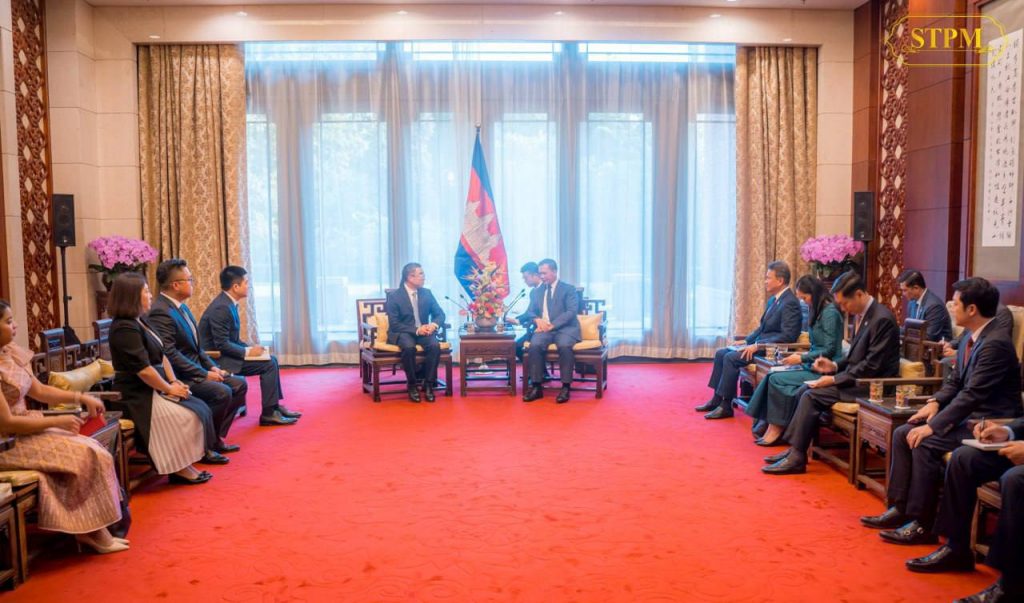 អំឡុងស្នាក់នៅរដ្ឋធានីប៉េកាំង ប្រទេសចិន សម្តេចមហាបវរធិបតី ហ៊ុន ម៉ាណែត នាយករដ្ឋមន្រ្តី បន្តទទួលជួបពិភាក្សាការងារជាមួយលោក វ៉ាង តុងជូ (Wang Tongzhou) ប្រធាន ក្រុមហ៊ុន China Road and Bridge Corporation (CRBC) កាលថ្ងៃព្រហស្បតិ៍ ទី១៤ ខែកញ្ញា ឆ្នាំ២០២៣។