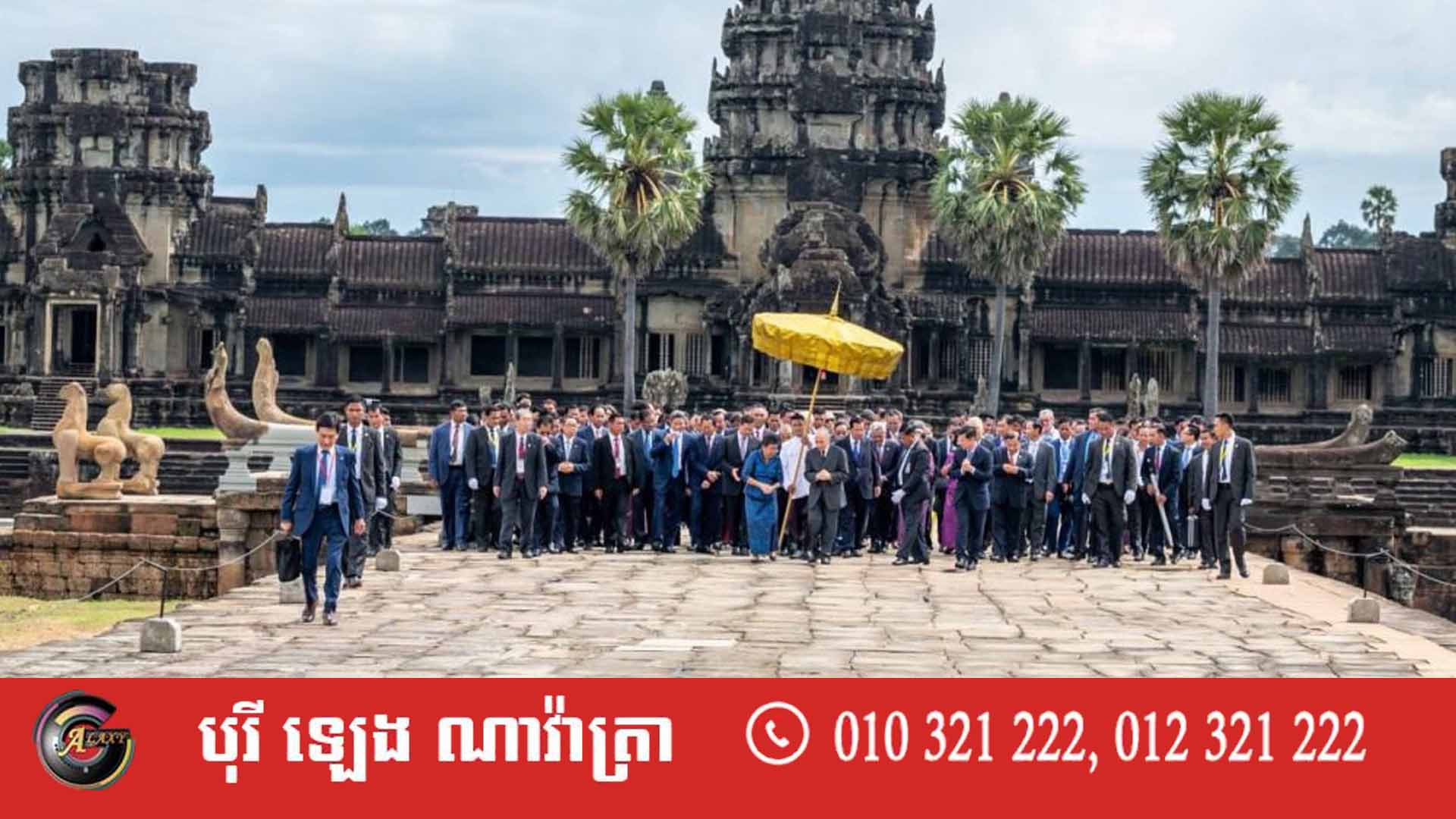 «ស្ពានហាលខាងលិចនៃប្រាសាទអង្គរវត្ត» នៅចំពីមុខនៃប្រាសាទអង្គរវត្ត សម្ពោធដាក់ឱ្យប្រើប្រាស់ជាផ្លូវការ ក្រោមព្រះរាជវត្តមានព្រះករុណាព្រះបាទសម្ដេចព្រះបរមនាថ នរោត្តម សីហមុនី ព្រះមហាក្សត្រ ឥស្សរជន ប្រមុខរាជរដ្ឋាភិបាល មន្រ្តីរាជខ្ពស់រាជរដ្ឋាភិបាល ព្រមទាំងមហាជនជាច្រើនច្រើនពាន់នាក់ កាលព្រឹកថ្ងៃសៅរ៍ ទី៤ ខែវិច្ឆិកា ឆ្នាំ២០២៣ នៅខេត្តសៀមរាប។