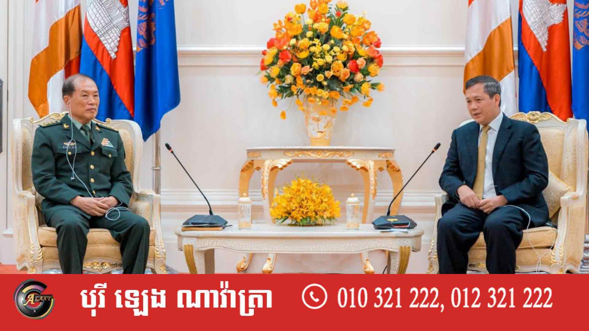 តាមរយៈជំនួបរវាងសម្តេចធិបតី ហ៊ុន ម៉ាណែត និងអនុប្រធានគណៈកម្មាធិការយោធាមជ្ឈិមនៃសាធារណរដ្ឋប្រជាមានិតចិន លោកនាយឧត្តមសេនីយ៍ ហឺ វ័យទុង (He Weidong) នារសៀលថ្ងៃទី៤ ខែធ្នូ ឆ្នាំ២០២៣ បានសម្រេចឯកភាពគ្នា ពង្រីកកិច្ចសហប្រតិបត្តិការលើការបណ្តុះបណ្តាលធនធានមនុស្ស និងការដោះមីនជាដើម។