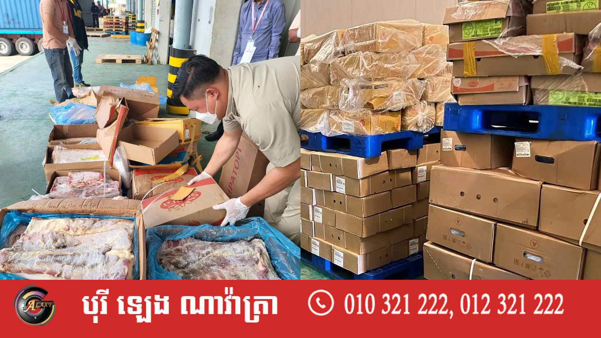 ក្រុមការងារអន្តរាគមន៍បង្ក្រាបបទល្មើសចលនាសត្វនៃអគ្គនាយកដ្ឋានសុខភាពសត្វ និងផលិតកម្មសត្វ បានចុះឆែកឆេរឃ្លាំងស្តុក ១កន្លែង នៅក្នុងសង្កាត់ក្រាំងធ្នង់ ខណ្ឌសែនសុខ និងរកឃើញសាច់បង្កកនាំចូលពីបរទេសដោយគ្មាច្បាប់ជិត ៤ សែនគីឡូក្រាម ។