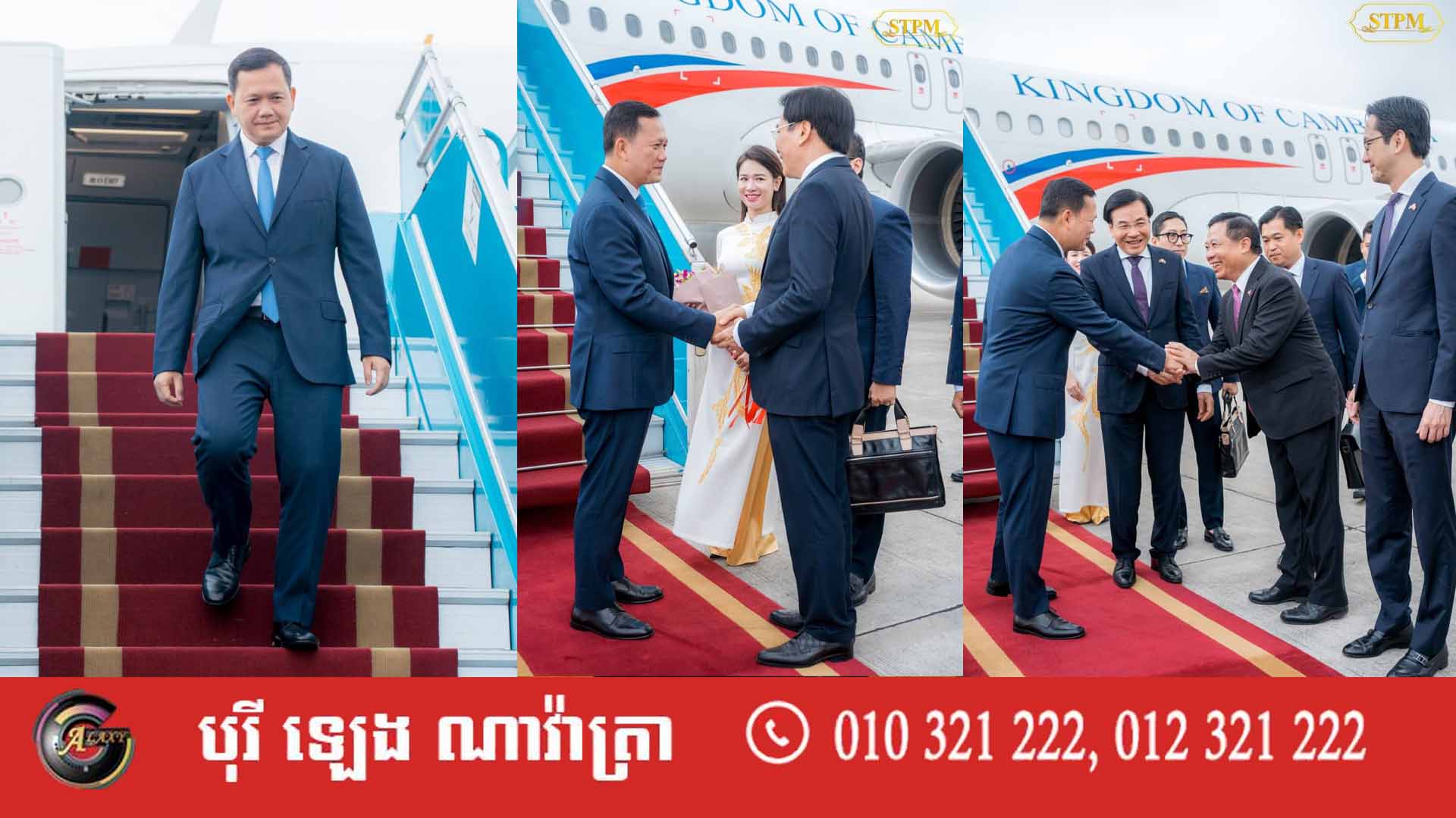 ប៉ុន្មានម៉ោងបន្ទាប់ពីបក្សីស្លាបដែកចាកចេញពីរាជធានីភ្នំពេញ សម្តេចធិបតីនិងគណៈរាជរដ្ឋាភិបាលបានដល់រដ្ឋធានីហាណូយ ប្រកបដោយសុវត្ថិភាព ដោយភាគីវៀតណាមបានរៀបចំកម្រាលព្រំក្រហមឆ្នូតពណ៌មាសស្វាគមន៍វត្តមានសម្តេចធិបតីនាយករដ្ឋមន្រ្តីចុះពីលើយន្តហោះពិសេសនៅអាកាសយានដ្ឋានអន្តរជាតិណូយបាយ នារដ្ឋធានីហាណូយ។