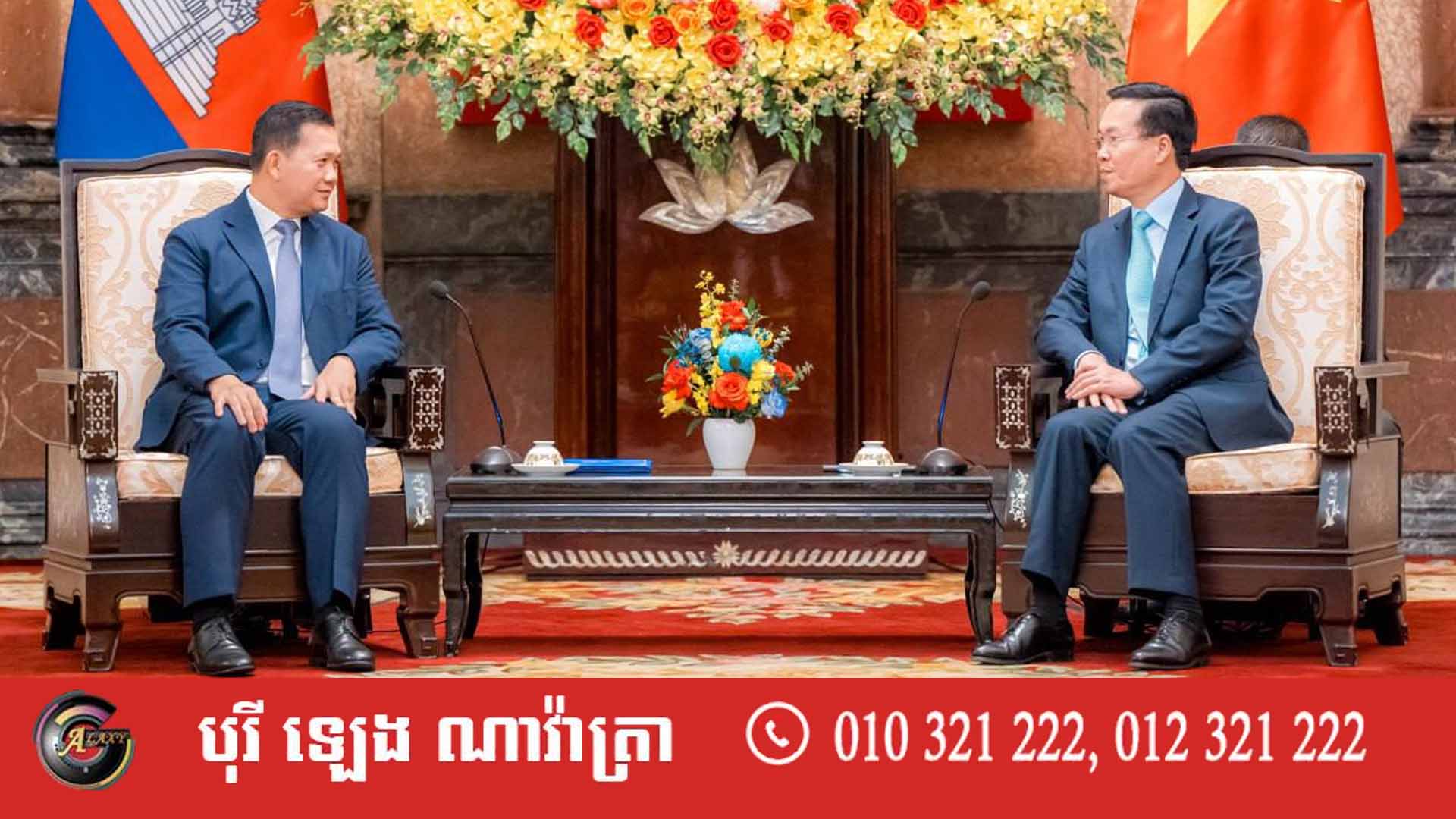 សម្តេចមហាបវរធិបតី ហ៊ុន ម៉ាណែត នាយករដ្ឋមន្ត្រី បានជួបសម្តែងការគួរសមជាមួយលោក វ៉ វ៉ាន់ធឿង (Vo Van Thuong) ប្រធានរដ្ឋវៀតណាម នៅថ្ងៃទី១១ខែធ្នូនេះ ក្នុងឱកាសនៃដំណើរបំពេញទស្សនកិច្ចផ្លូវការរយៈពេល ០២ ថ្ងៃនៅវៀតណាម ចាប់ពី១១ ដល់ថ្ងៃទី១២ ខែធ្នូ ឆ្នាំ២០២៣។