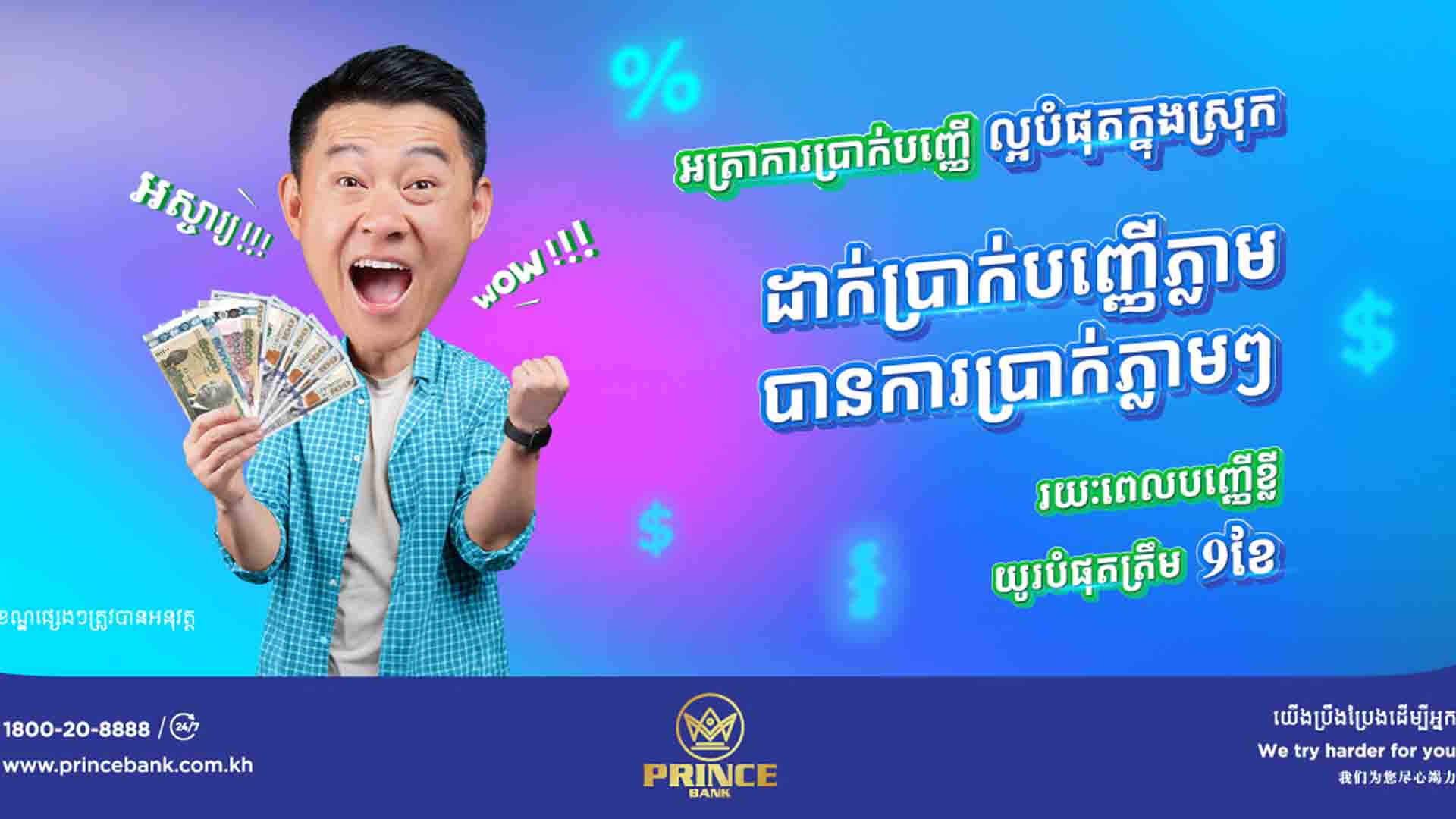 ធនាគារ ព្រីនស៍ ណែនាំនូវគណនី​ប្រាក់​បញ្ញើមានកាលកំណត់ទទួលបានការប្រាក់ភ្លាម ​ជាមួយ​អត្រា​ការ​ប្រាក់​ល្អ​បំផុត និង​​រយៈពេល​បញ្ញើខ្លី ដំបូងបង្អស់​ក្នុង​ប្រទេស​កម្ពុជា