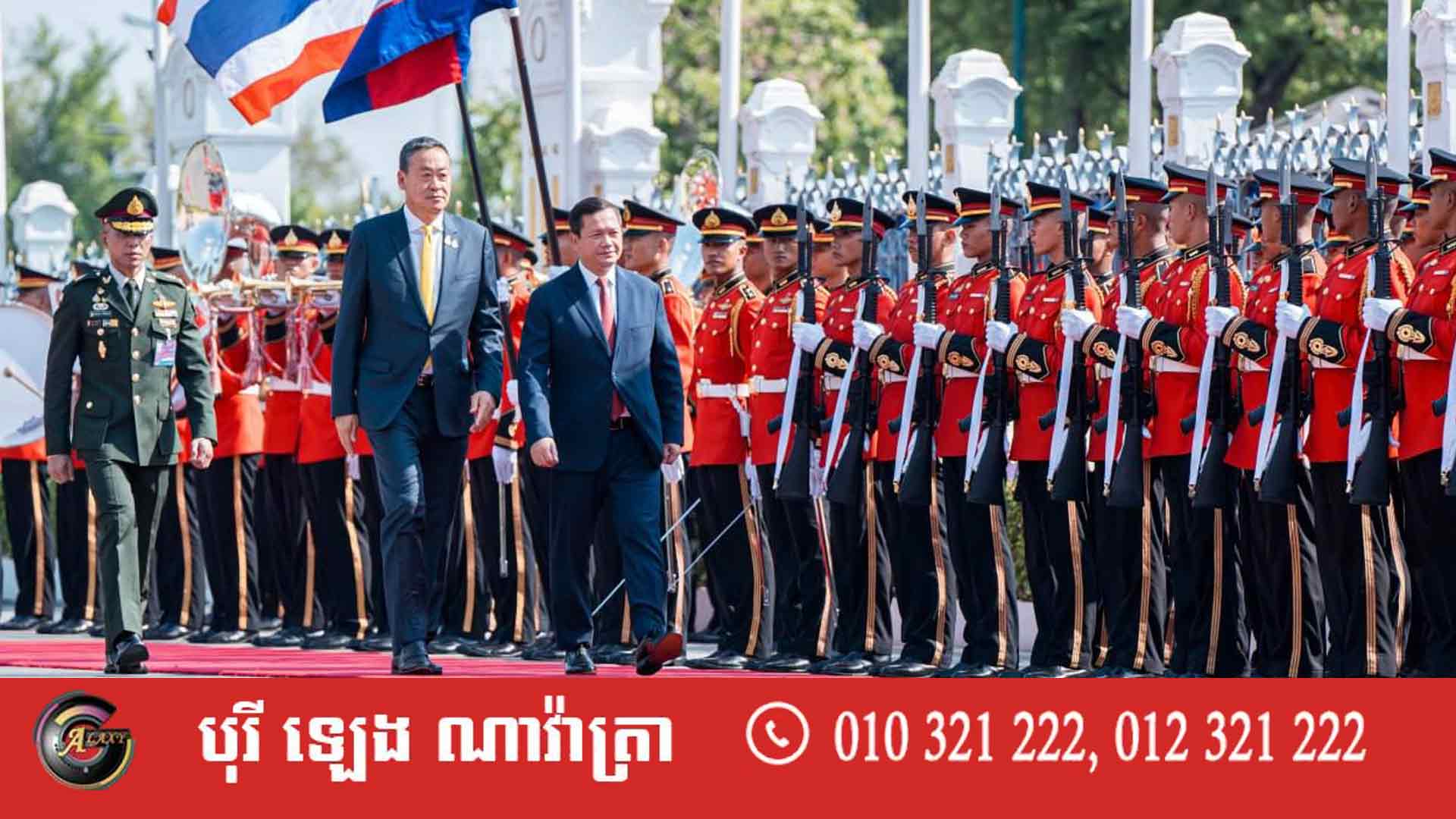 នាយករដ្ឋមន្រ្តីថៃ រៀបចំពិធីបដិសណ្ឋារកិច្ចផ្លូវការយ៉ាងកក់ក្តៅស្វាគមន៍វត្តមានសម្តេចធិបតី ហ៊ុន ម៉ាណែត