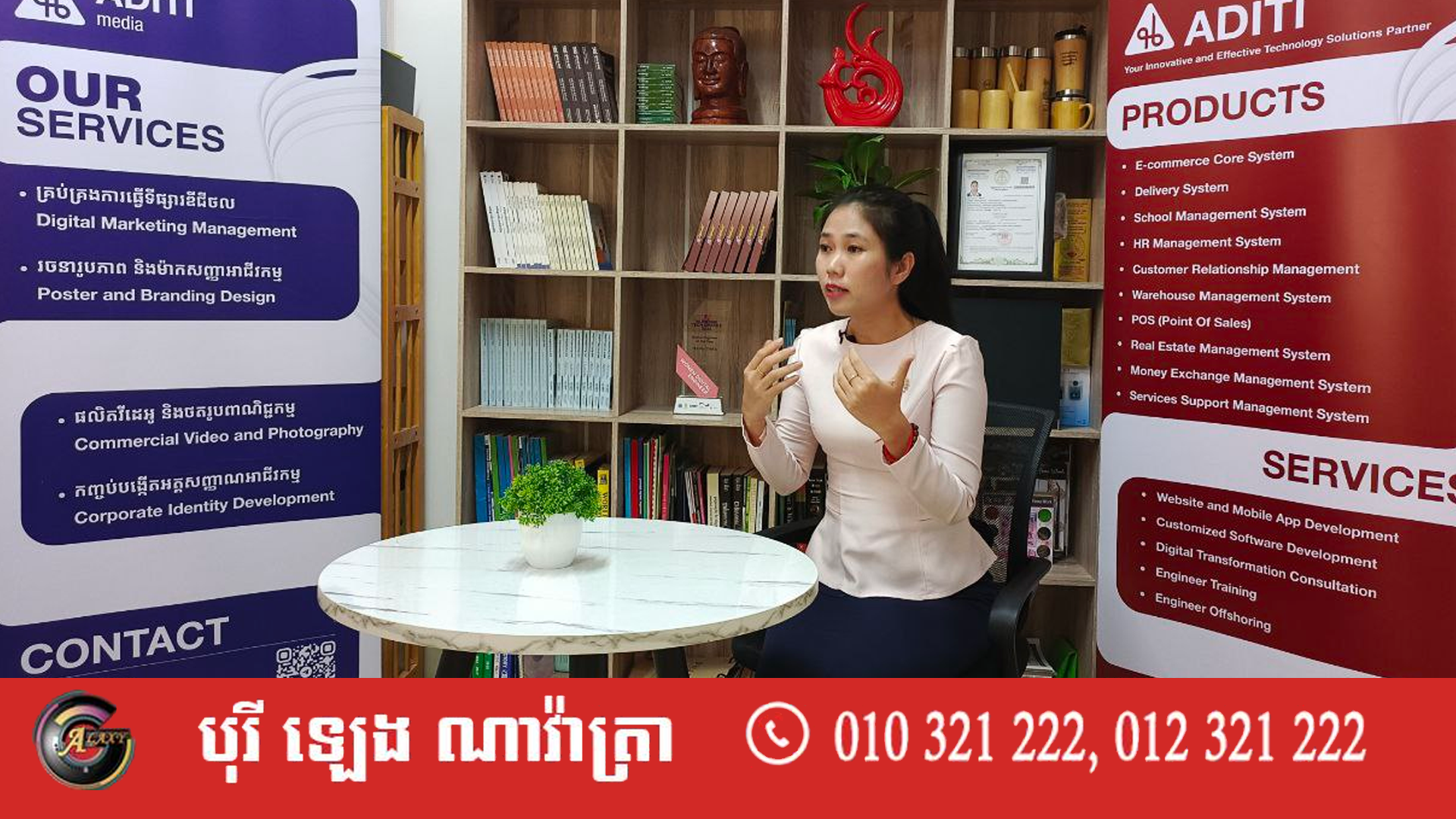 សូមជម្រាបជូនថា លោកស្រី ហ៊ាង អូមួយ ជាសហគ្រិនមួយរូបធ្វើការលើវិស័យឌីជីថលរយៈពេល៧ឆ្នាំមកហើយ ដោយ បានឆ្លងកាត់ការសហការជាមួយស្ថាប័នរដ្ឋនិងឯកជនក្នុងប្រទេស និងលើឆាកអន្ដរជាតិជាច្រើន ទើបបោះជំហានបង្កើត ក្រុមហ៊ុន ADITI ដោយខ្លួន៕