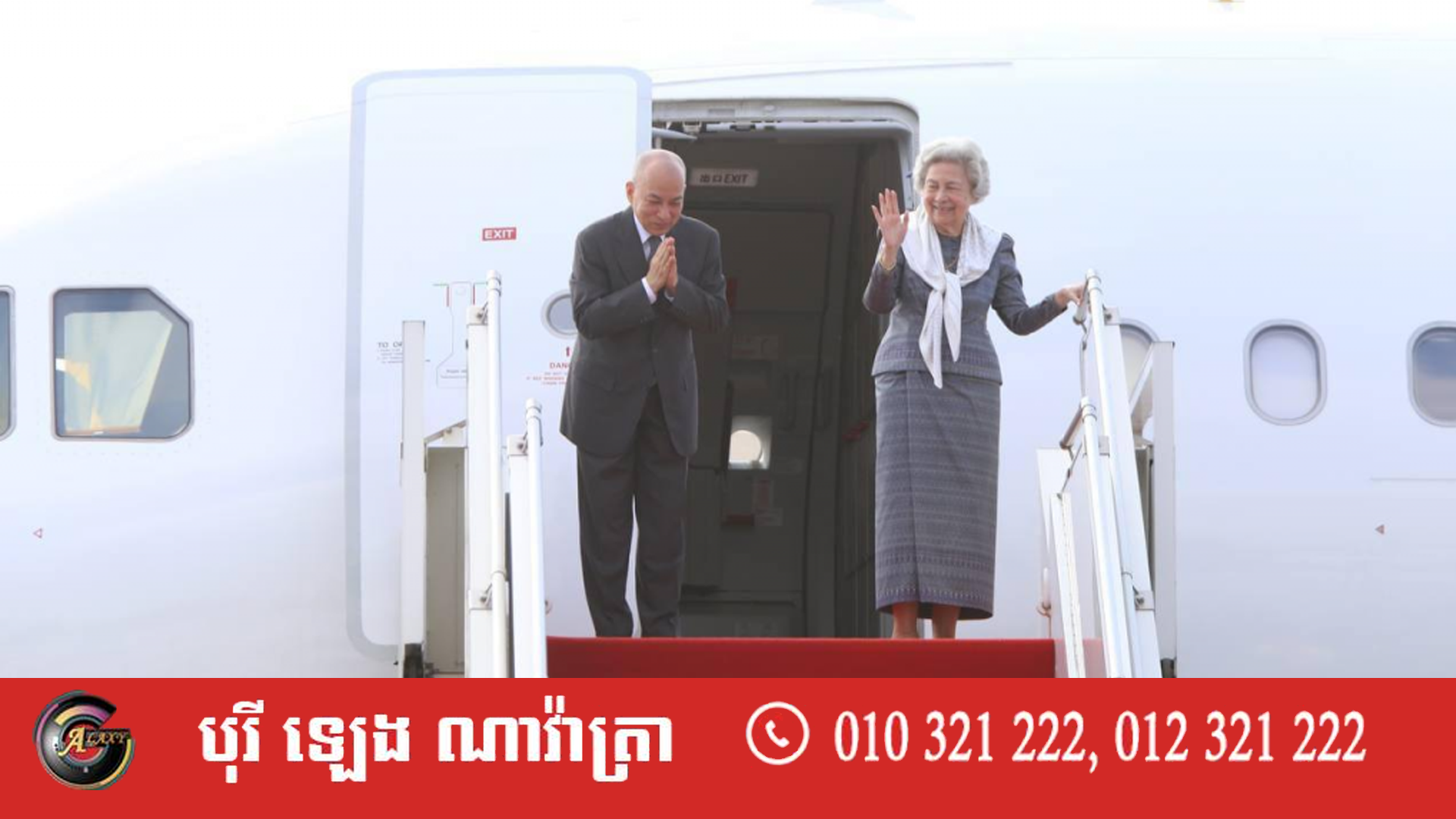 ការយាងពិនិត្យព្រះរាជសុខភាពរបស់ព្រះអង្គទាំងទ្វេនៅព្រឹកថ្ងៃចន្ទនេះ ចូលរួមថ្វាយព្រះរាជដំណើរពីថ្នាក់ដឹកនាំឧត្តមប្រឹក្សាផ្ទាល់ព្រះមហាក្សត្រ, ប្រធានព្រឹទ្ធសភា, ប្រធានរដ្ឋសភា និងប្រតិភូរាជរដ្ឋាភិបាលកម្ពុជាជាច្រើនរូបនៅអាកាសយានដ្ឋានអន្តរជាតិភ្នំពេញ។