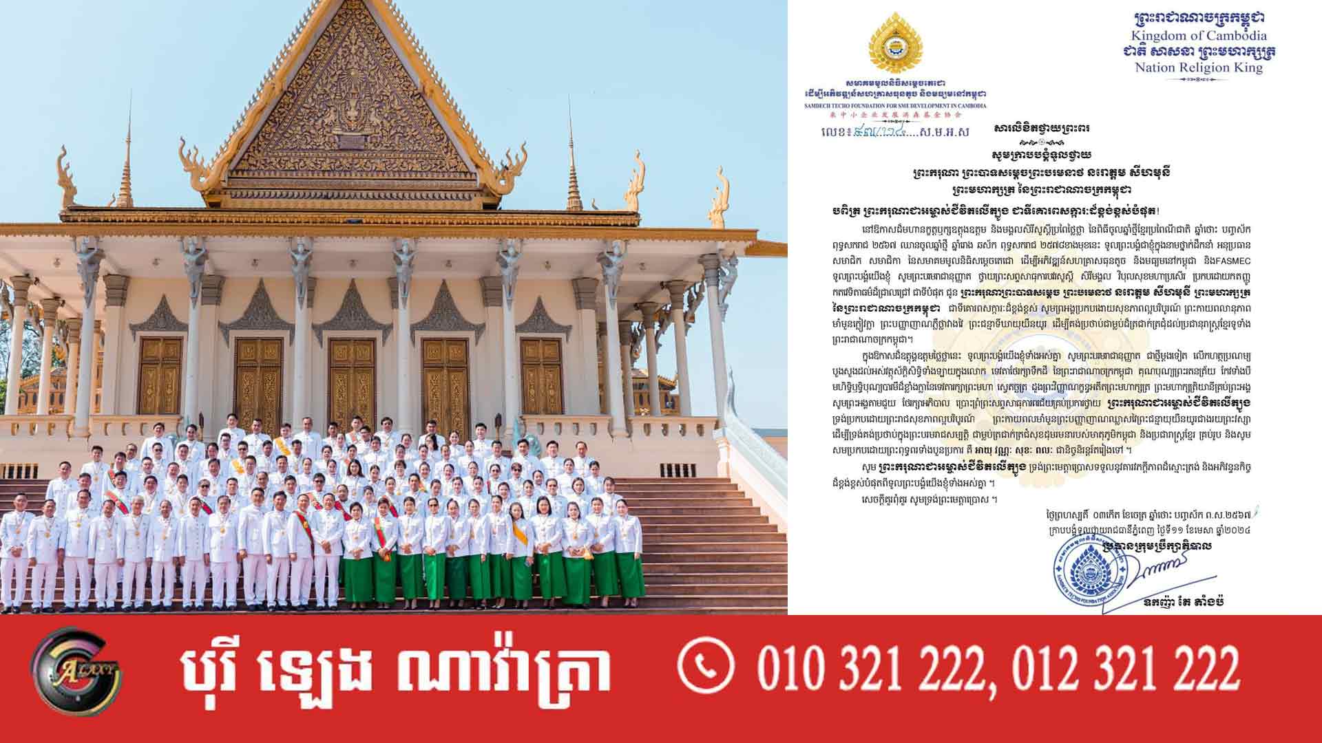 នៅក្នុងសារលិខិតថ្វាយព្រះពររបស់សមាគមមូលនិធិសម្តេចតេជោ SME និងFASMEC បានក្រាបទូលថ្វាយនៅឱកាសដ៏មហានក្ខត្តឬក្សឧត្តុងឧត្តម និងមង្គលសិរីសួស្តីប្រពៃថ្លៃថ្លា នៃពិធីចូលឆ្នាំថ្មីខ្មែរប្រពៃណីជាតិ ឆ្នាំថោះ បញ្ចស័ក ពុទ្ធសករាជ ២៥៦៧ ឈានចូលឆ្នាំថ្មី ឆ្នាំរោង ឆស័ក ពុទ្ធសករាជ ២៥៧៨ខាងមុខនេះ ទូលព្រះបង្គំជាខ្ញុំក្នុងនាមថ្នាក់ដឹកនាំ អនុប្រធាន សមាជិក សមាជិកា នៃសមាគមមូលនិធិសម្តេចតេជោ ដើម្បីអភិវឌ្ឍន៍សហគ្រាសធុនតូច និងមធ្យមនៅកម្ពុជា និងFASMEC ទូលព្រះបង្គំយើងខ្ញុំ សូមព្រះបរមរាជានុញ្ញាត ថ្វាយព្រះសព្ទសាធុការបវរសួស្តី សិរីមង្គល វិបុលសុខមហាប្រសើរ ប្រកបដោយកតញ្ញូ កតវេទិតាធម៌ដ៏ជ្រាលជ្រៅ ជាទីបំផុត ជូន ព្រះករុណាព្រះបាទសម្តេច ព្រះបរមនាថ នរោត្តម សីហមុនី ព្រះមហាក្សត្រ នៃព្រះរាជាណាចក្រកម្ពុជា ជាទីគោរពសក្ការៈដ៏ខ្ពង់ខ្ពស់ សូមព្រះអង្គប្រកបដោយសុខភាពល្អបរិបូរណ៍ ព្រះកាយពលានុភាព មាំមួនក្លៀវក្លា ព្រះបញ្ញាញាណភ្លឺថ្លាវាងវៃ ព្រះជន្មាទីឃាយុយឺនយូរ ដើម្បីគង់ប្រថាប់ជាម្លប់ដ៏ត្រជាក់ត្រជុំដល់ប្រជានុរាស្ត្រខ្មែរទូទាំង ព្រះរាជាណាចក្រកម្ពុជា។