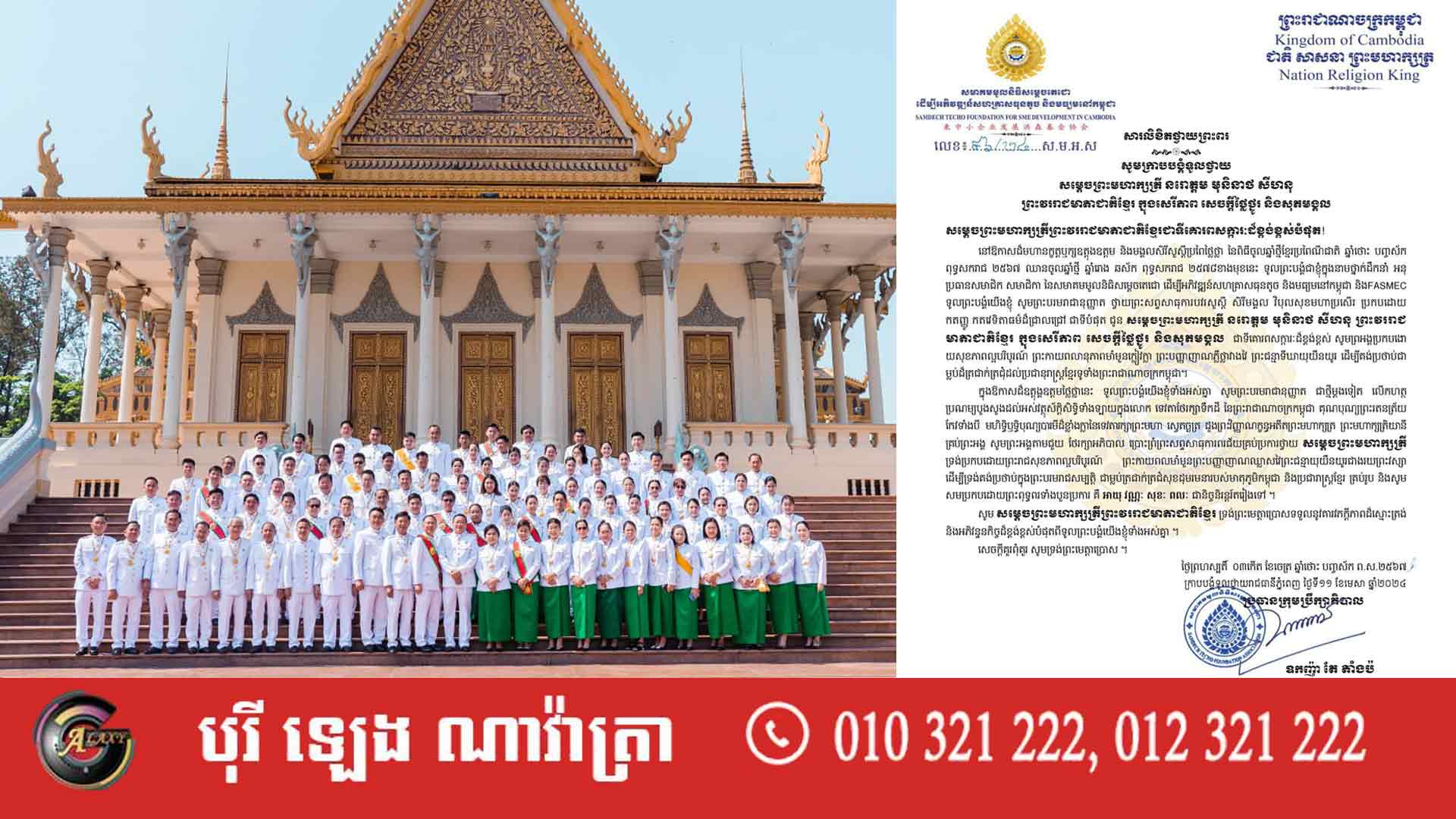 សមាគមមូនិធិសម្តេចតេជោ ដើម្បីអភិវឌ្ឍន៍សហគ្រាសធុនតូច និងមធ្យមនៅកម្ពុជា និង FASMEC ដែលមានឧកញ៉ា តែ តាំងប៉ ជាប្រធានដឹកនាំ អនុប្រធាន សមាជិក សមាជិកា ក្រាបបង្គំទូលថ្វាយព្រះពរ សម្តេចព្រះមហាក្សត្រី នរោត្តម មុនិនាថ សីហនុ ព្រះវររាជមាតាជាតិខ្មែរជាទីគោរពសក្ការៈដ៏ខ្ពង់ខ្ពស់ នាឱកាសពិធីបុណ្យចូលឆ្នាំថ្មីប្រពៃណីជាតិខ្មែរ ឆ្នាំរោង ឆស័ក ពុទ្ធសករាជ ២៥៦៨ខាងមុខនេះ។
