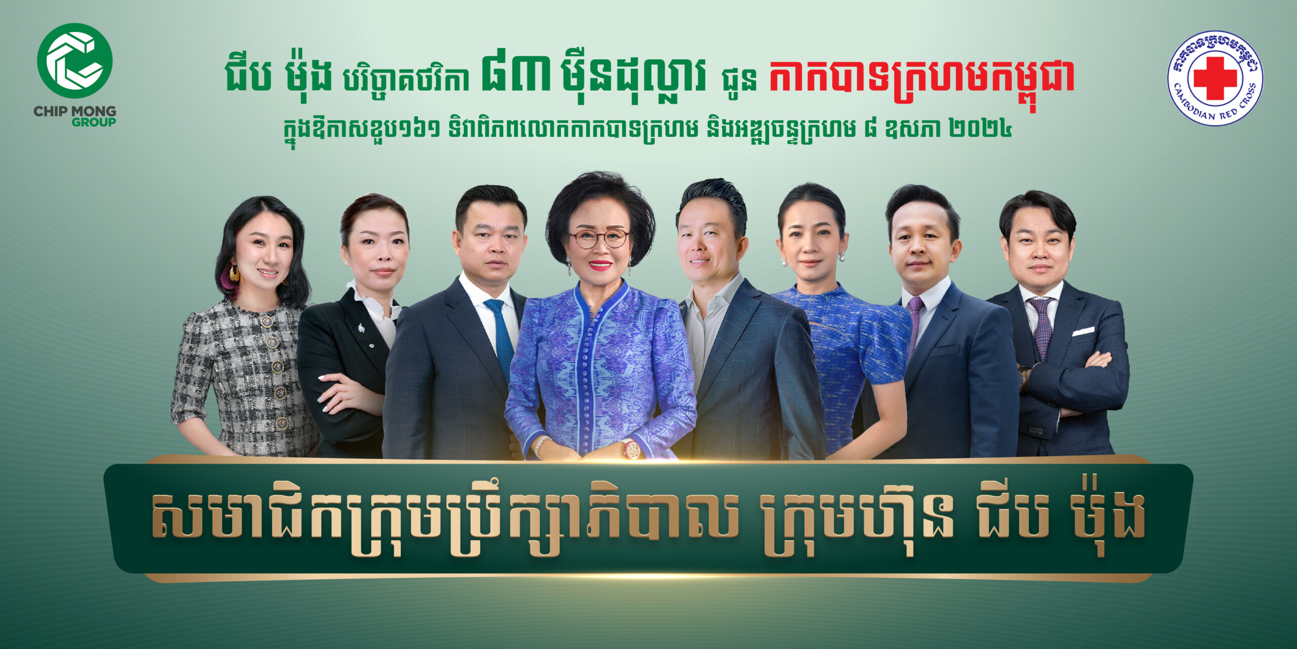 ថ្នាក់ដឹកនាំក្រុមហ៊ុន ជីប ម៉ុង បានបរិច្ចាគថវិកាសរុបចំនួន ៨៣ម៉ឺនដុល្លារអាមេរិក ជាមួយកាកបាទក្រហមកម្ពុជា ក្នុងឱកាស ខួប១៦១ ទិវាពិភពលោកកាកបាទក្រហម និងអឌ្ឍចន្ទក្រហម ៨ ឧសភា ២០២៤នេះ។ ក្នុងនោះ ថវិកាចំនួន ៧០ម៉ឺនដុល្លារ ត្រូវបានបរិច្ចាគដោយផ្ទាល់ជូនកាកបាទក្រហមកម្ពុជា ១០ម៉ឺនដុល្លារទៀត តាមរយៈសមាគមឧកញ៉ាកម្ពុជា និង ៣ម៉ឺនដុល្លារទៀតតាមរយៈអគ្គនាយកដ្ឋានគយ និងរដ្ឋាករកម្ពុជា។