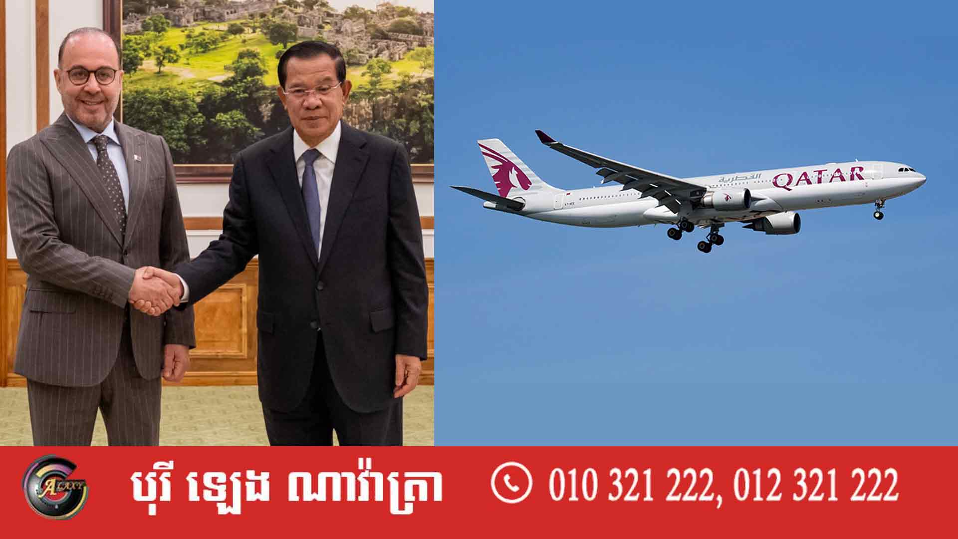 សម្តេចតេជោ ហ៊ុន សែន ប្រធានព្រឹទ្ធសភានៃកម្ពុជា បានប្រាប់ទៅកាន់ឯកអគ្គរាជទូតកាតាថា កាតាគួរតែចាប់ផ្ដើមហោះហើរឡើងវិញនូវ Qatar Airline បន្ទាប់ពីបានផ្អាកដំណើរការដោយសារកូវីដកន្លងទៅ ដើម្បីឱ្យការទំនាក់ទំនង ក៏ដូចជាការនាំភ្ញៀវពីតំបន់មជ្ឈិមបូព៌ានិងអឺរ៉ុបមកកាន់កម្ពុជា ហើយក៏នាំភ្ញៀវពីកម្ពុជានិងតំបន់អាស៊ានទៅកាន់កាតាវិញផងដែរ។