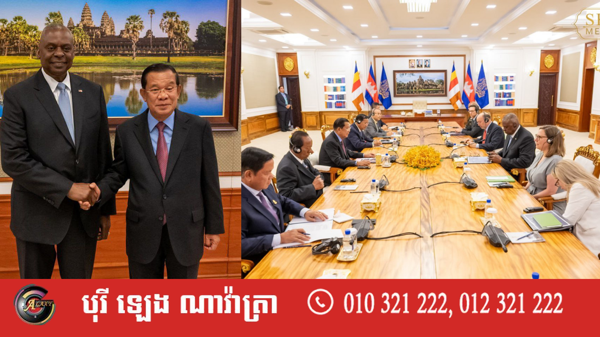 គួរបញ្ជាក់ដែរថា តាមរយៈជំនួបនេះ សម្ដេចតេជោ និងលោក អូស្ទីន បានឯកភាពគ្នាលើការបន្តឱ្យមានការសន្ទនាគ្នាដើម្បីស្វែងរកផ្លូវថ្មីមួយក្នុងទំនាក់ទំនងរវាងកម្ពុជានិងអាមេរិកដើម្បីអនាគត ខណៈលោករដ្ឋមន្ត្រីការពារជាតិអាមេរិក ក៏បានកោតសរសើរចំពោះសម្ដេចធិបតី នាយករដ្ឋមន្ត្រី ដែលបានបង្ហាញជំហរយ៉ាងរឹងមាំក្នុងវិស័យការពារជាតិដើម្បីរៀបចំនូវទំនាក់ទំនងរវាងប្រទេសទាំងពីរផងដែរ៕ អត្ថបទ៖ រង្សី
