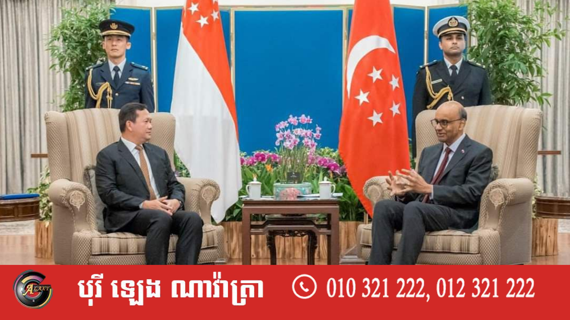 សម្តេចធិបតី ហ៊ុន ម៉ាណែត នាយករដ្ឋមន្ត្រី នៃព្រះរាជាណាចក្រកម្ពុជា និងលោក Tharman​Shanmugaratnam ប្រធានាធិបតី នៃសាធារណរដ្ឋសិង្ហបុរី បានបង្ហាញការប្តេជ្ញាថា នឹងរួមគ្នាខិតខំពង្រី កទំហំវិនិយោគ ពាណិជ្ជកម្ម និងទេសចរណ៍ទ្វេភាគីឱ្យកាន់តែល្អប្រសើរបន្ថែមទៀត។