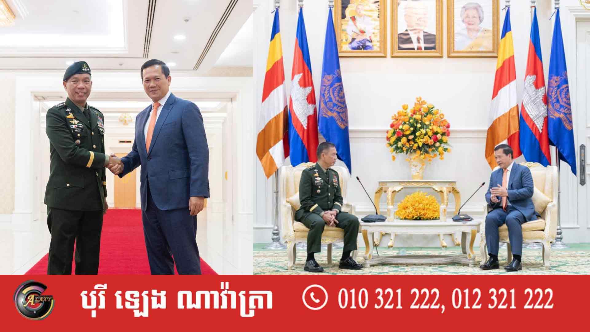 ជាមួយគ្នានេះ សម្ដេចធិបតី ហ៊ុន ម៉ាណែត បានបង្ហាញក្តីរីករាយចំពោះលទ្ធផលនៃកិច្ចសហប្រតិបត្តិការរវាងកងទ័ពជើងគោកនៃប្រទេសទាំងពីរ និងបានវាយតម្លៃខ្ពស់ចំពោះវគ្គបណ្តុះបណ្តាល និងការហ្វឹកហ្វឺនរួម ដែលបានរួមចំណែកកសាងសមត្ថភាព និងការយល់ដឹងពីគ្នាទៅវិញទៅមក បន្ថែមទៀត ក្នុងការត្រៀមខ្លួនឆ្លើយតបចំពោះការគម្រាមកំហែងមិនប្រពៃណី ជាយថាហេតុ។