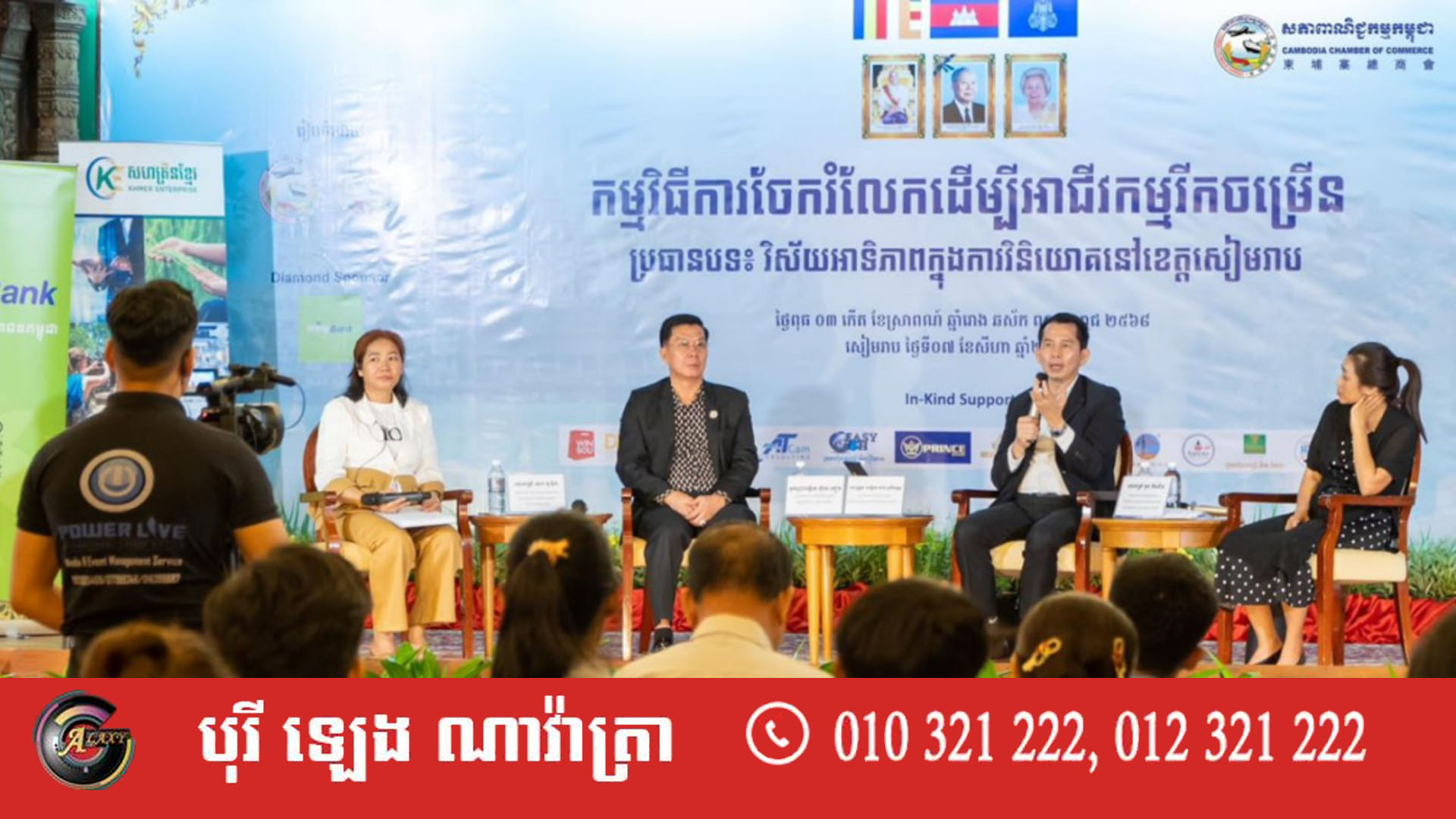 សភាពាណិជ្ជកម្មកម្ពុជា និងសភាពាណិជ្ជកម្មមណ្ឌលខេត្តសៀមរាប-ឧត្តរមានជ័យ បានរៀបចំកម្មវិធីចែករំលែកដើម្បីអាជីវកម្មរីកចម្រើន ក្រោមប្រធានបទ «វិស័យអាទិភាពក្នុងការវិនិយោគនៅខេត្តសៀមរាប»។