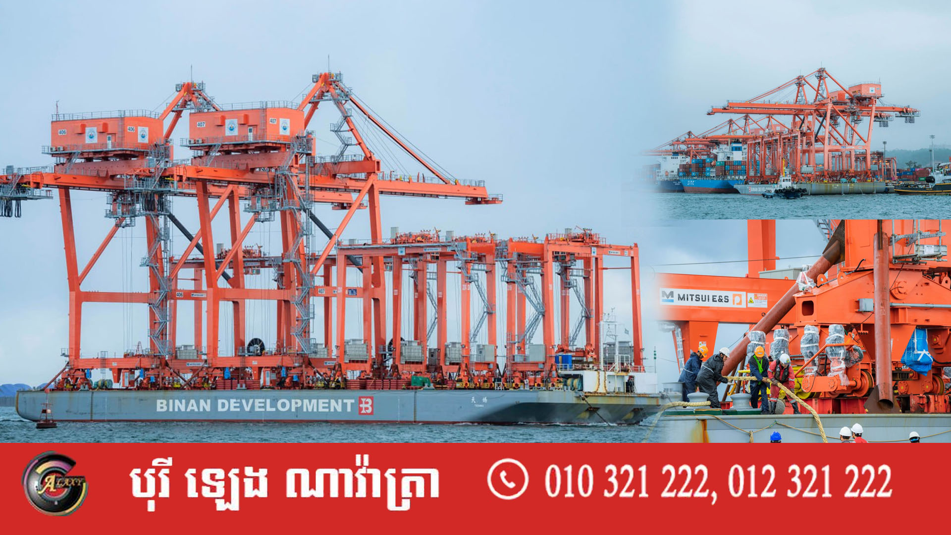 គ្រឿងចក្រលើកដាក់កុងតឺន័រនៅគែមផែ ប្រភេទ QC ចំនួន ២ គ្រឿង និងគ្រឿងចក្រលើកដាក់កុងតឺន័រនៅទីលាន ប្រភេទ RTG ចំនួន ៦ គ្រឿង ត្រូវបានដឹកជញ្ជូនពីរោងចក្រ Oita ប្រទេសជប៉ុន មកដល់ ចំណតផែកុងតឺន័រថ្មីប្រវែង ២៥៣ ម៉ែត្រ របស់កំពង់ផែស្វយ័តក្រុងព្រះសីហនុ ប្រកបដោយសុវត្ថិភាពកាលពីពាក់កណ្តាលសប្តាហ៍នេះ។