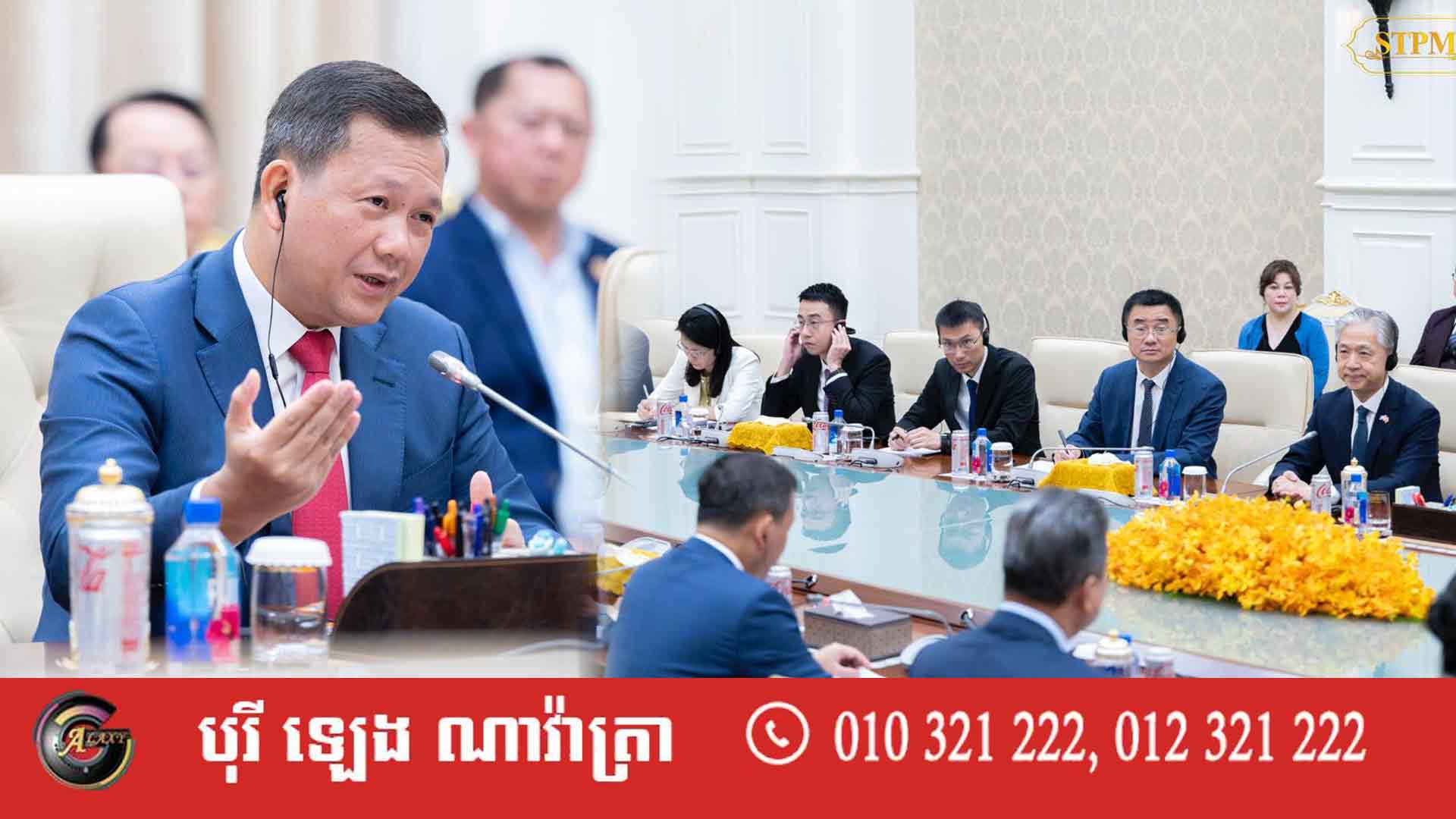 សម្តេចធិបតី ហ៊ុន ម៉ាណែត នាយករដ្ឋមន្រ្តីនៃកម្ពុជា បានអនុញ្ញាតឱ្យក្រុមហ៊ុនចំនួន៩ ដឹកនាំដោយលោក Wen Zhan Bin លេខាគណៈកម្មាធិការបក្ស មកពីទីក្រុងសានថូវ ខេត្តក្វាងតុង សាធារណរដ្ឋប្រជាមានិតចិន ចូលជួបសម្តែងការគួរសម និងពិភាក្សាការងារ នៅថ្ងៃទី១៣ ខែសីហា ឆ្នាំ២០២៤ នាវិមានសន្តិភាព។