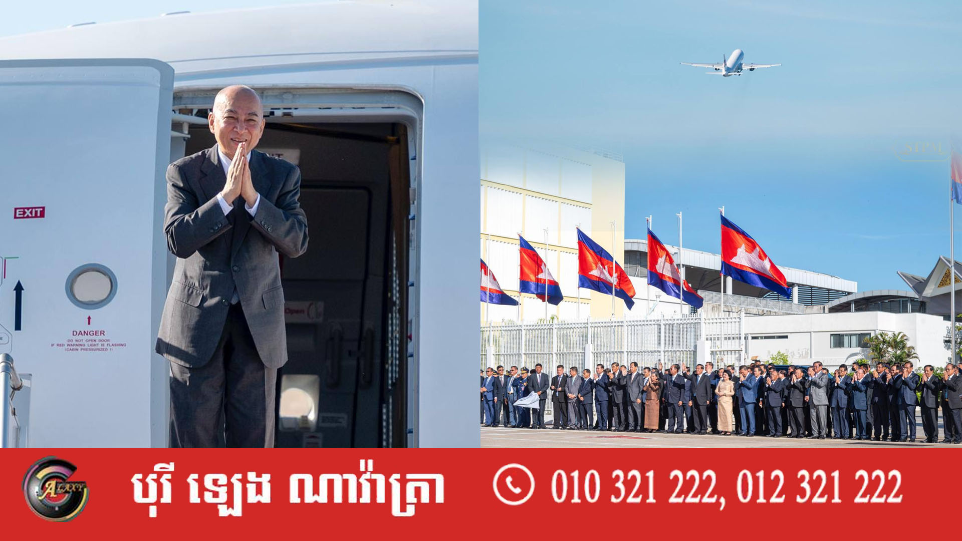 ព្រះករុណា ព្រះបាទ សម្តេចព្រះបរមនាថ នរោត្តម សីហមុនី ព្រះមហាក្សត្រ នៃព្រះរាជាណាចក្រកម្ពុជា បានយាងចាកចេញពីរាជធានីភ្នំពេញឆ្ពោះទៅកាន់ប្រទេសចិន ទីដែលព្រះអង្គ បំពេញព្រះរាជទស្សនកិច្ច ចាប់ពីថ្ងៃទី១៤ ខែសីហា ឆ្នាំ២០២៤នេះតទៅ។