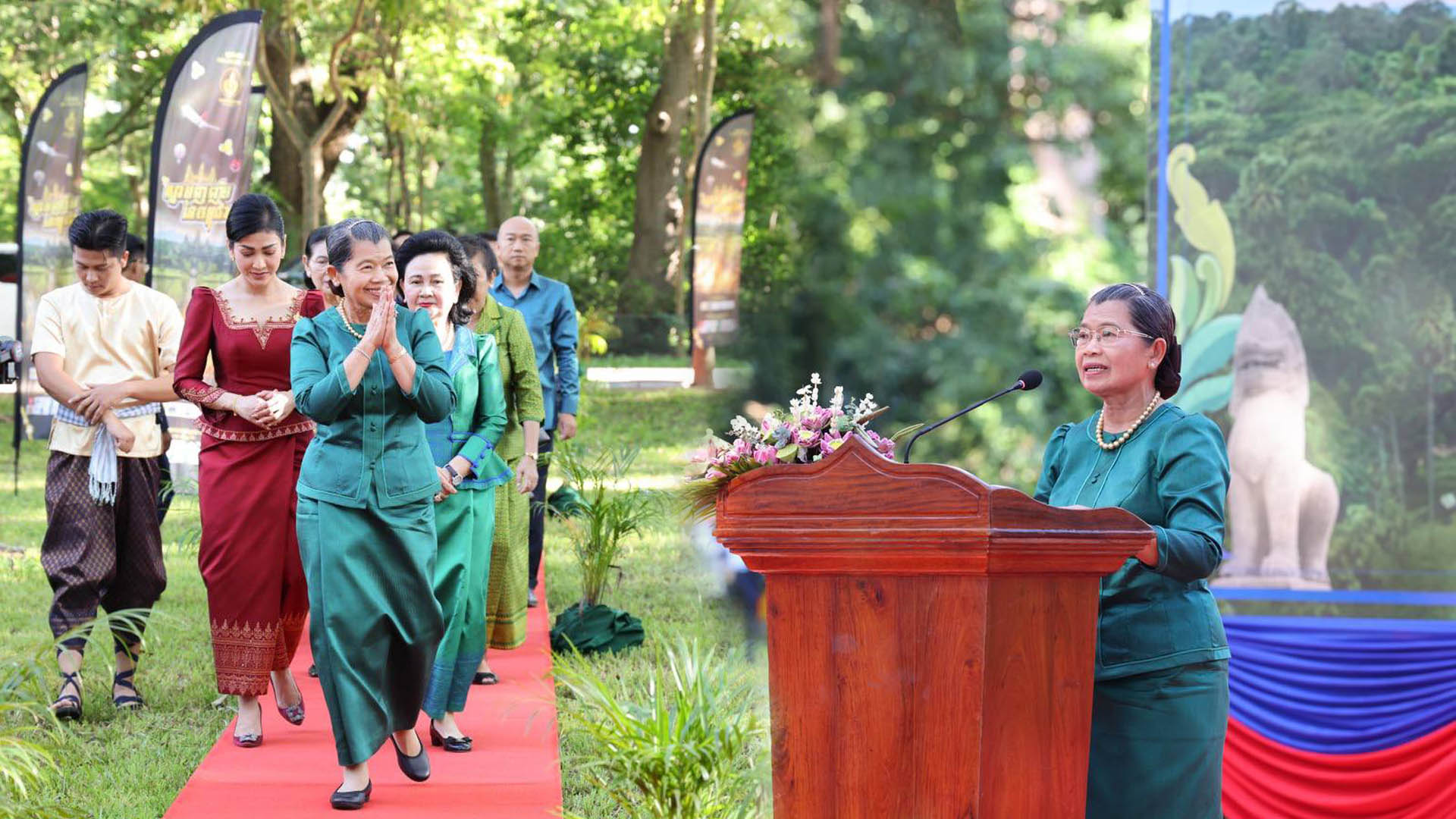 ក្នុងឱកាសនោះ សម្តេចកិត្តិសង្គហបណ្ឌិតបានប្រសាសន៍បញ្ជាក់យ៉ាងច្បាស់ថា កាលពីអតីតកាលកម្ពុជា ពោរពេញដោយសង្គ្រាម ពុំមានអ្នកណាមានសិទ្ធសេរីភាព រងនូវការកាប់សម្លាប់ បែកបាក់និរាសព្រាត់ប្រាស់គ្រួសារ គ្មានទេស្នាមញញឹម ។ ដោយឡែក ព្រឹត្តិការណ៍ថ្ងៃនេះកើតចេញពីប្រទេសមានសុខសន្តិភាព ទើបមានកម្មវិធី ស្នាមញញឹមនៃកម្ពុជាថ្ងៃនេះ ដែលផ្នែកមួយនៃគោលនយោបាយ និងទិសដៅការទស្សនាខេត្តសៀមរាបឆ្នាំ២០២៤ ដែលបានដាក់ចេញដោយ សម្តេចមហាបវរធិបតី ហ៊ុន ម៉ាណែត នាយករដ្ឋមន្ត្រីនៃព្រះរាជាណាចក្រកម្ពុជាកាលពីដើមឆ្នាំកន្លងទៅ ដើម្បីជម្រុញវិស័យ ទេសចរណ៍ នៅខេត្តសៀមរាបឲ្យងើបឡើងវិញ បន្ទាប់ពីរងផលប៉ះពាល់ដោយសារជម្ងឺកូវីដ១៩។