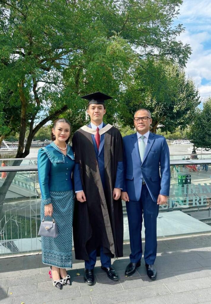 ឯកឧត្តមរដ្ឋមន្ត្រី បានបន្ថែមថា៖ “ប៉ាម៉ាក់ និងក្រុមគ្រួសារទាំងមូលពិតជាមានមោទនភាពចំពោះកូនខ្លាំងណាស់ ដែលបានមើលឃើញកូនទទួលសញ្ញាប័ត្រនៅក្នុងថ្ងៃនេះ។ សមិទ្ធផលនេះបានមកពី ការខិតខំប្រឹងប្រែង និងការប្តេជ្ញាចិត្តរបស់កូន។ កូនត្រូវតែធ្វើបែបនេះបន្តទៀត នេះគ្រាន់តែជាការបើកទំព័រថ្មីមួយទៀតនៃឆាកជីវិតរបស់កូន កូនត្រូវចាំថាមាន ប៉ាម៉ាក់ និងក្រុមគ្រួសារទាំងអស់ដែលនៅពីក្រោយគាំទ្រកូន សម្រេចដល់គោលដៅបន្តទៀត ដេីម្បីក្លាយជាធនធានដ៏មានតម្លៃ និងប្រយោជន៍ដល់សង្គមជាតិ។ ជាចុងក្រោយ ប៉ាម៉ាក់សូមជូនពរកូនឱ្យមានសុខភាពល្អ ប្រាជ្ញាភ្លឺថ្លាឈ្លាសវៃ និងសុខចម្រើនគ្រប់វេលា។ ដោយសេចក្តីស្រឡាញ់ និងមោទនភាពគ្មានទីបញ្ចប់”។