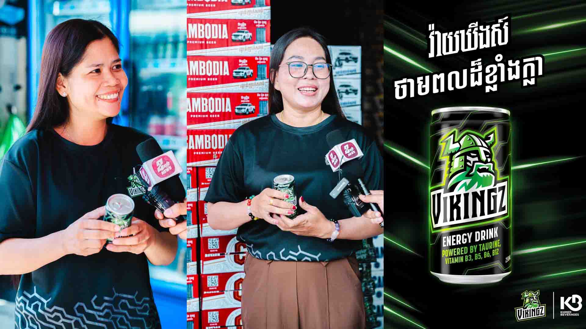 ភ្នំពេញ៖ ខ្មែរ ប៊ែវើរីជីស បានប្រកាសជាផ្លូវការនូវវត្តមានភេសជ្ជៈប៉ូវកម្លាំងថ្មីរបស់ខ្លួន គឺភេសជ្ជៈប៉ូវកម្លាំង វ៉ាយឃីងស៍ Vikingz ! វ៉ាយឃីងស៍ ជាភេសជ្ជៈប៉ូវកម្លាំង វ៉ាយឃីងស៍ គឺជាប្រភេទភេសជ្ជៈប៉ូវកម្លាំងមានជាតិហ្គាស ផ្សំឡើងពីវីតាមីន B3 B5 B6 B12 និង TAURINE មានរសជាតិឆ្ងាញ់ ផ្ដល់នូវអារម្មណ៍ស្រស់ស្រាយ និងបង្កើនថាមពលដ៏ខ្លាំងក្លា។