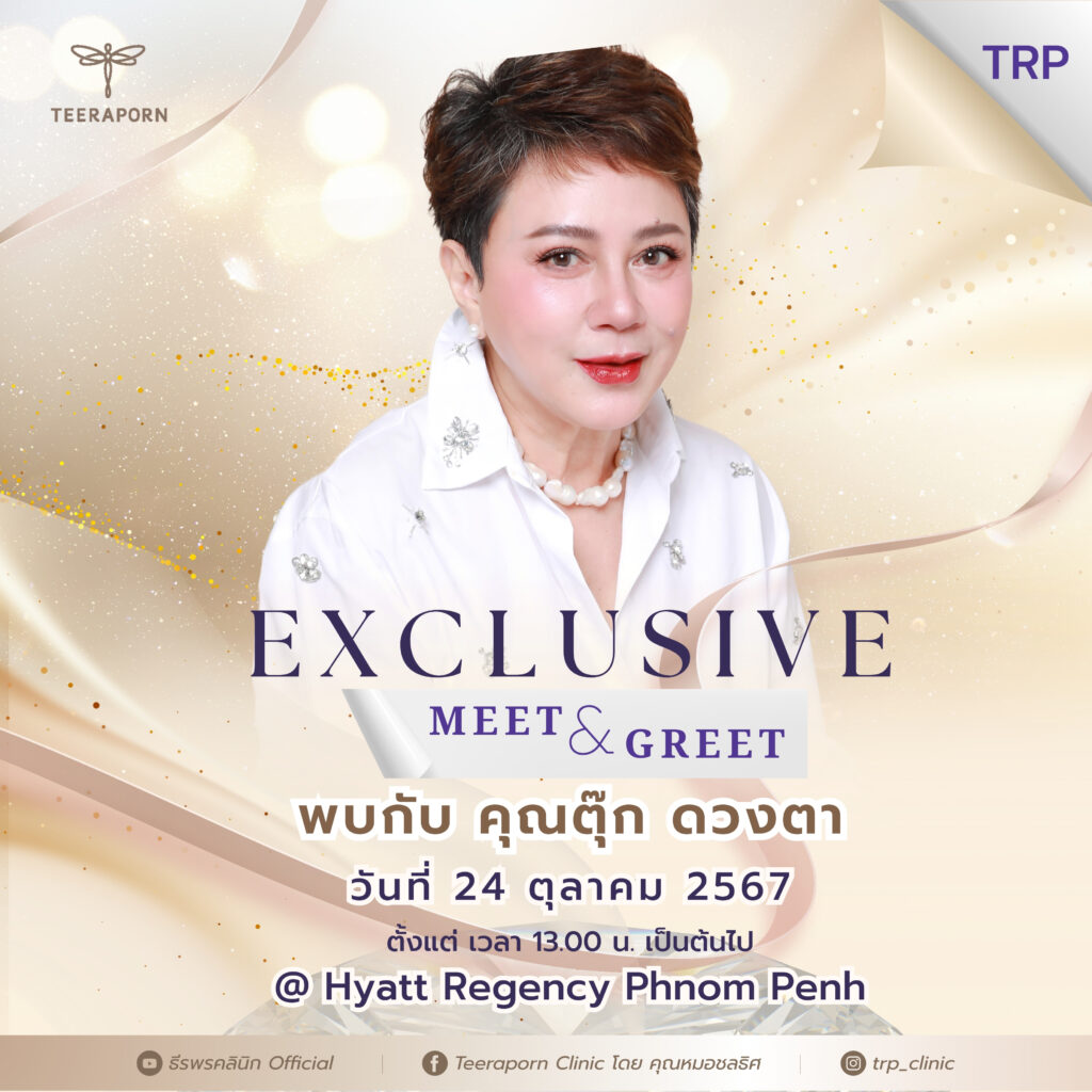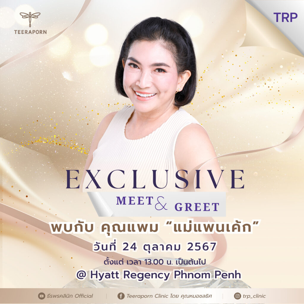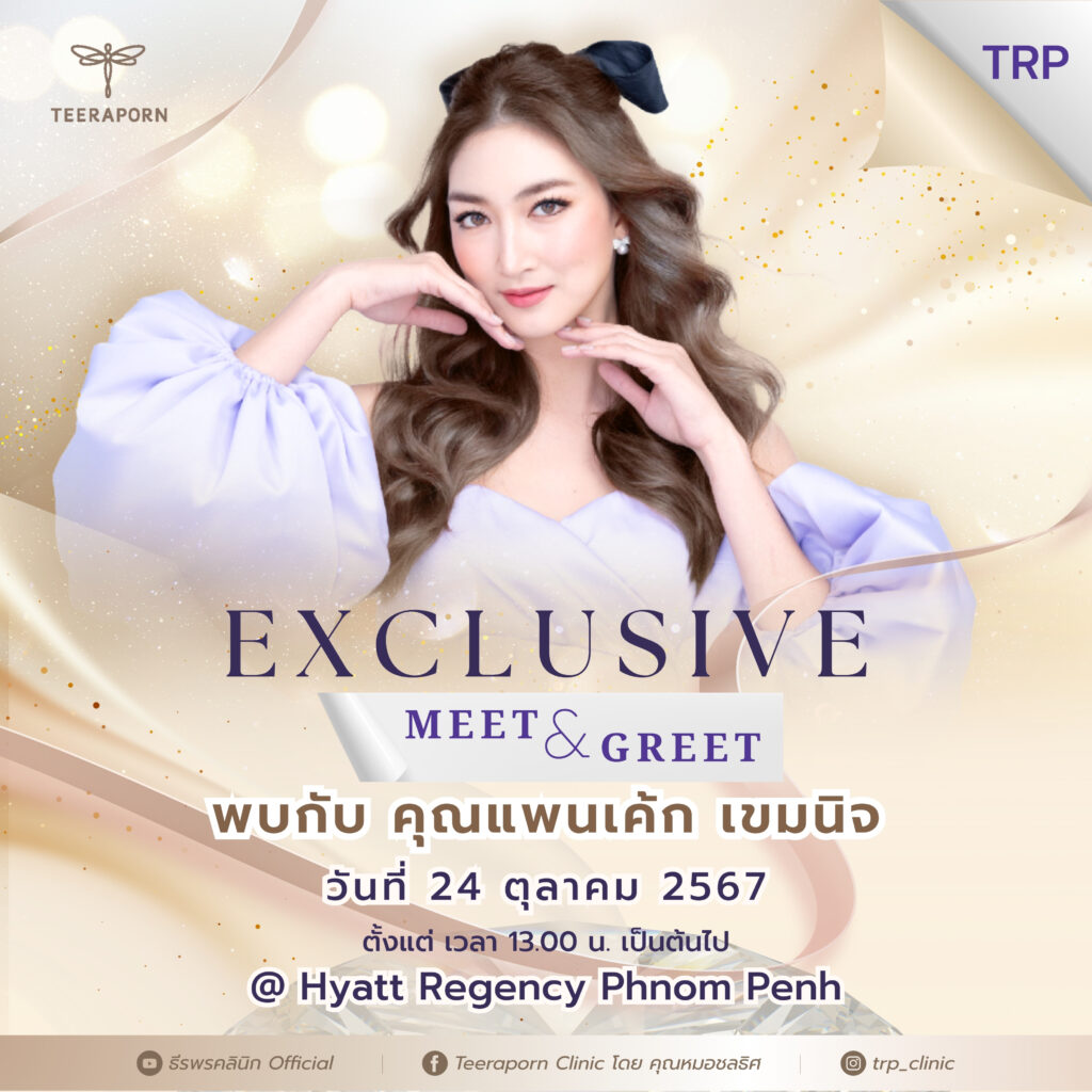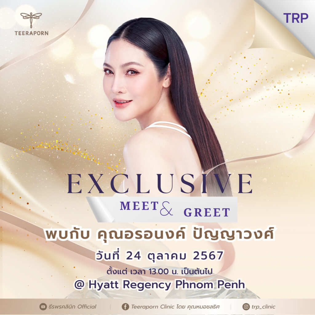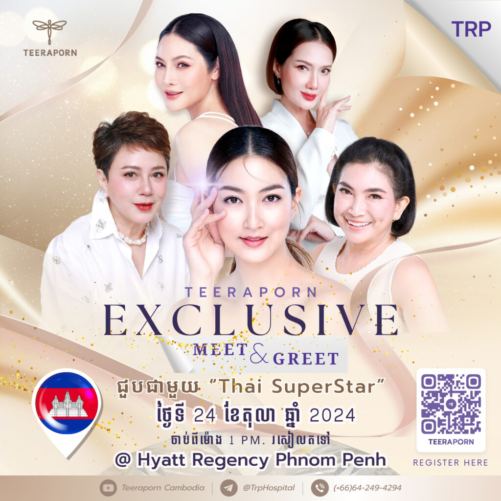 ភ្នំពេញ ថ្ងៃទី11 ខែតុលា ឆ្នាំ២០២៤៖ មន្ទីរពេទ្យកែសម្ផស្ស ធីរ៉ៈផន (TEERAPORN) ដែលជាមជ្ឈមណ្ឌលកែសម្ផស្សលំដាប់ឈានមុខគេជាមួយបទពិសោធច្រើនជាង៤០ឆ្នាំ នៅប្រទេសថៃ បានពង្រីកសេវាកម្មរបស់ខ្លួននៅកម្ពុជាតាមរយៈកម្មវិធីជំនួបពិសេស TEERAPORN Exclusive Meet & Greet ដែលផ្ដល់ឱកាសដល់សាធារណជនឱ្យទទួលបាននូវសេវាប្រឹក្សាយោបល់អំពីការកែសម្ផស្សដោយឥតគិតថ្លៃ ព្រមទាំងអាចជួបផ្ទាល់ជាមួយក្រុមវេជ្ជបណ្ឌិតល្បីៗរបស់ខ្លួនមកពីប្រទេសថៃផ្ទាល់ និងតារាថៃដ៏ល្បីលំដាប់ជួរមុខ កញ្ញា ផេនខេក (Pancake Khemnit)។