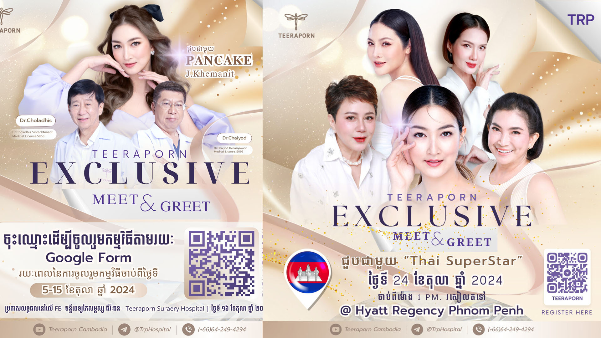 សម្រាប់ព័ត៌មានបន្ថែមអំពីមន្ទីរពេទ្យកែសម្ផស្ស ធីរ៉ៈផន និងការចុះឈ្មោះចូលរួមកម្មវិធី សូមទាក់ទងមកកាន់ 012 790 686 ឬតាមដានទំព័រហ្វេសប៊ុកមន្ទីរពេទ្យកែសម្ផស្ស ធីរ៉ៈផន (TEERAPORN)៖ https://www.facebook.com/@teerapornsurgeryhospital%E1%9F%94