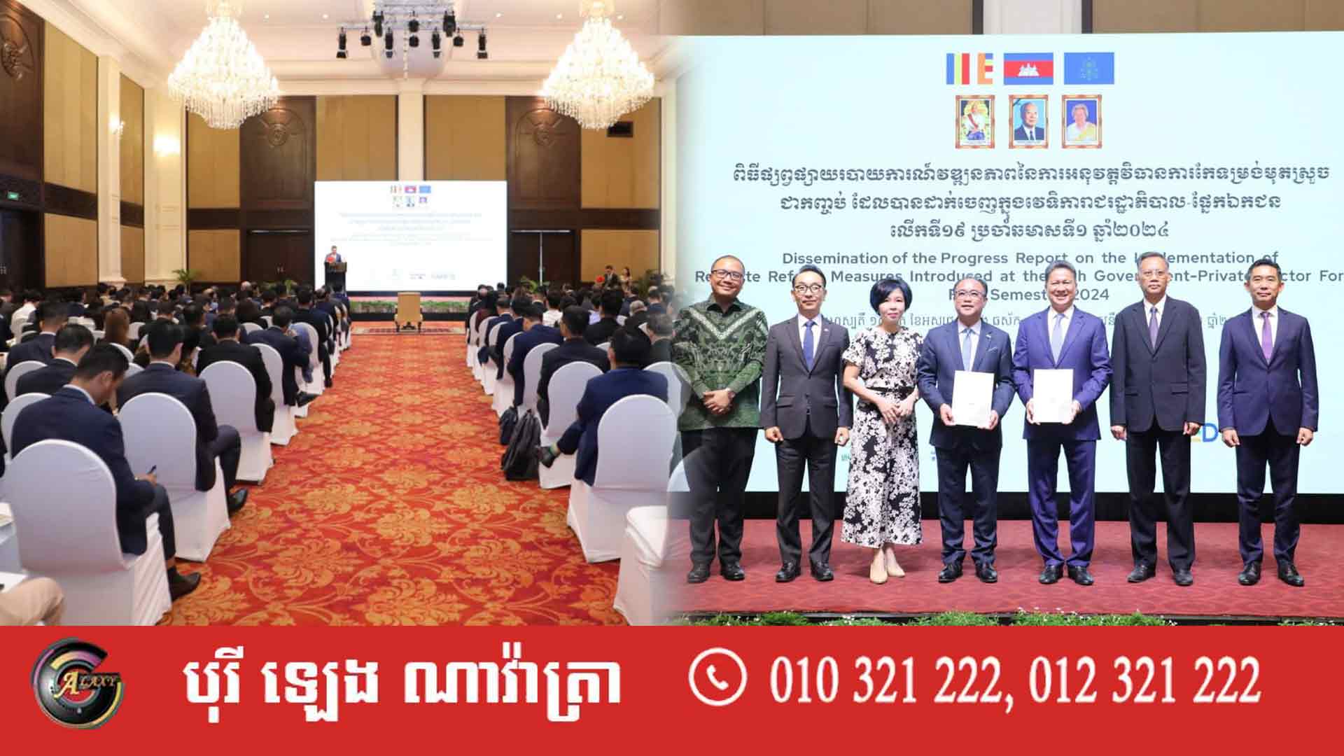 ស្ថាប័នរដ្ឋាភិបាល កាលពីថ្ងៃទី១៧ ខែតុលា ឆ្នាំ២០២៤ បានផ្សព្វផ្សាយ “របាយការណ៍វឌ្ឍនភាពនៃការអនុវត្តវិធានការកែទម្រង់មុតស្រួចជាកញ្ចប់ ដែលបានដាក់ចេញក្នុងវេទិការាជរដ្ឋាភិបាល-ផ្នែកឯកជន លើកទី១៩ ប្រចាំឆមាសទី១ ឆ្នាំ២០២៤” សំដៅជួយលើកកម្ពស់បរិយាកាសធុរកិច្ចនិងវិនិយោគនៅកម្ពុជាឱ្យកាន់តែប្រសើរឡើង។