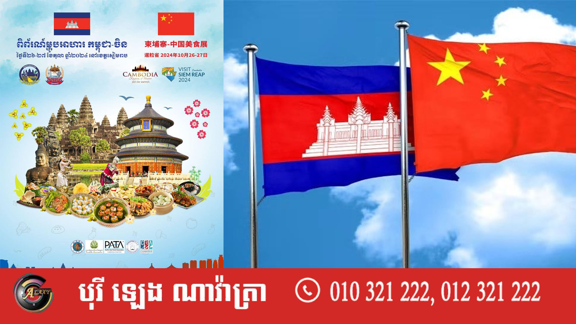 ម្ហូបអាហារល្បីៗរបស់ប្រទេសកម្ពុជា និងចិន ប្រមាណ១០០ស្តង់ នឹងត្រូវដាក់តាំងបង្ហាញនៅក្នុងពិព័រណ៍ម្ហូបអាហារ កម្ពុជា-ចិន (Cambodia-China Gastronomy Week) ចាប់ពីថ្ងៃទី២៦ ដល់ថ្ងៃទី២៧ ខែតុលា ឆ្នាំ ២០២៤ នៅខេត្តសៀមរាប។