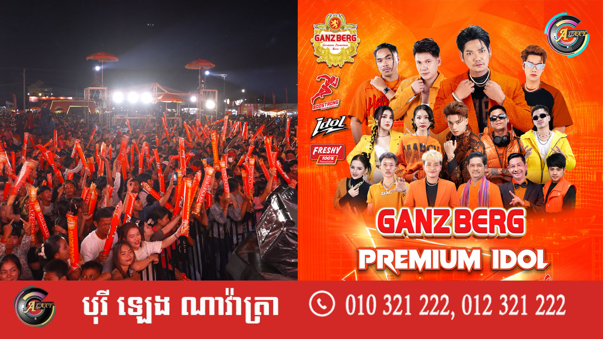 មហាព្រឹត្តិការណ៍ប្រគំតន្រ្តីGanzberg Premium Idol Tour Concert សហការជាមួយផលិតកម្មដ៏ធំ Galaxy Navatra បានធ្វើដំណើរមកដល់ខេត្តកំពង់ចាម ហើយនៅសប្ដាហ៍នេះ ដោយ ការប្រគំតន្ត្រីដ៏ធំសម្បើមមួយនេះ នឹងនាំយកកំពូលតារាចម្រៀងប្រចាំប្រទេសជាច្រើនដួង មកអង្រួនឆាក បង្កើតទស្សនីយភាពដ៏អស្ចារ្យ បម្រើអារម្មណ៍ពុកម៉ែបងប្អូន អាចចូលរួមទទួលយកភាពសប្បាយរីករាយ និងរាំលេងកម្សាន្ត ជាមួយនឹង ចង្វាក់ភ្លេងគ្រប់ស្ទាយ ព្រមទាំងបានជួបជាមួយអាយដលជាច្រើនដួងផងដែរ ។