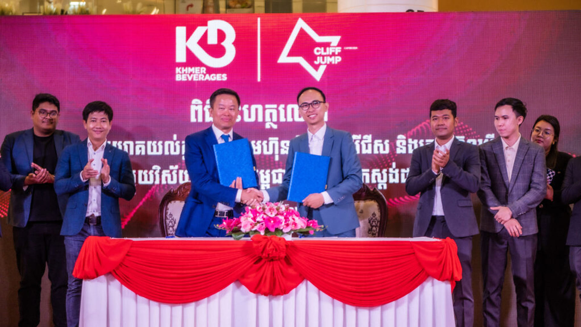 ភ្នំពេញ៖ ខ្មែរ ប៊ែវើរីជីស ដែលមានផលិតផល​ CAMBODIA SUPREME បានចុះហត្ថលេខាលើអនុស្សរណៈជាមួយក្រុមហ៊ុន ឃ្លីវចាំ (Cliff Jump) ស្ដីពីកិច្ចសហការរៀបចំព្រឹត្តិការណ៍តន្ត្រីអេឡិចត្រូនិច ឬហៅកាត់ថា​ EDM ដ៏ធំប្រចាំឆ្នាំ ដើម្បីជាការលើកស្ទួយវិស័យតន្រ្តីគ្រប់ប្រភេទនៅកម្ពុជា កាលពីថ្ងៃទី ២២ ខែតុលា ឆ្នាំ២០២៤។