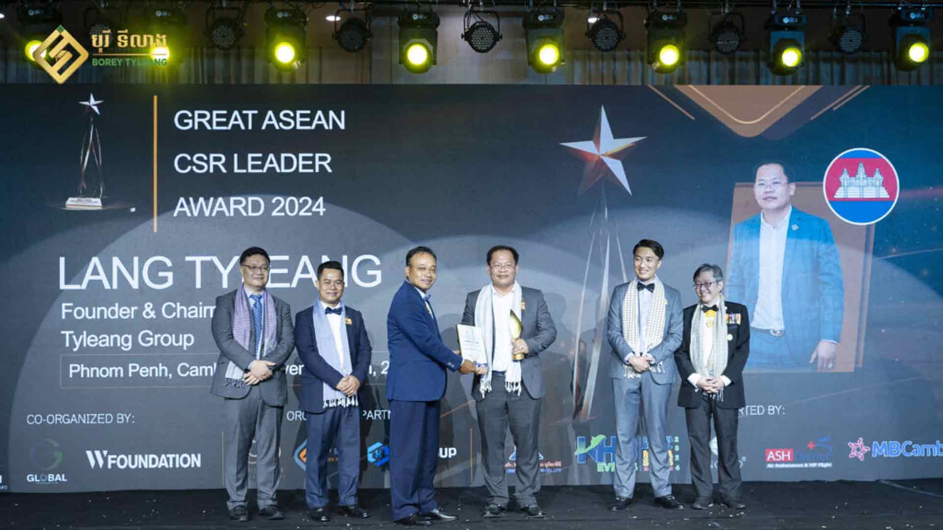 លោកឧកញ៉ា ឡាង ទីលាង អគ្គនាយក Tyleang Group នាថ្ងៃទី១១ ខែវិច្ឆិកា ឆ្នាំ២០២៤ បានឈ្នះពានរង្វាន់អ្នកដឹកនាំឆ្នើមប្រចាំតំបន់អាស៊ាន ឆ្នាំ២០២៤ “GREAT ASEAN CSR LEADER AWARD 2024” ដែលបានរួមចំណែក ជួយដល់កិច្ចការងារសង្គម។