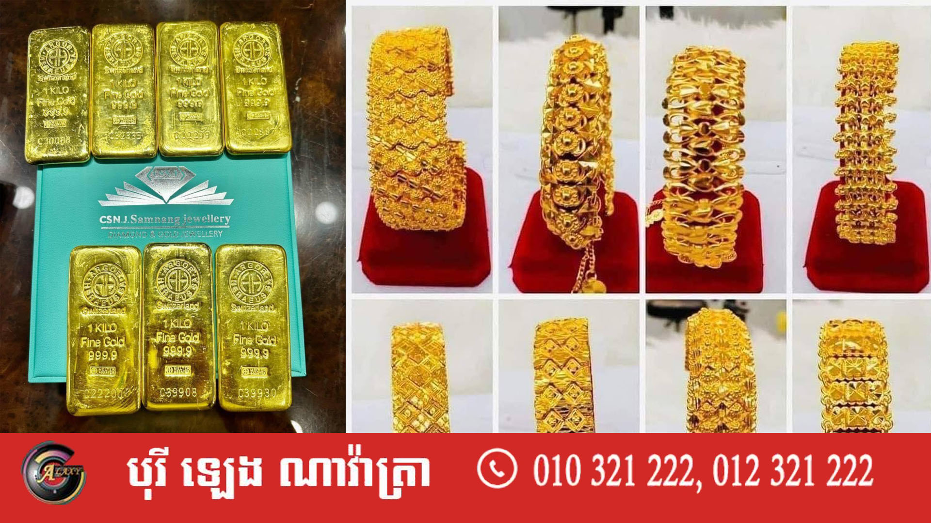 យោងតាមហាងលក់គ្រឿងអលង្ការ CSNJ របស់លោកឧកញ៉ា ចិន សំណាង បានឱ្យដឹងនៅថ្ងៃទី២២ ខែវិច្ឆិកា ឆ្នាំ២០២៤នេះថា មាស មានតម្លៃ៣២៤ដុល្លារក្នុងមួយជី ជាតម្លៃលក់ចេញ និងទិញចូល ៣១៤ដុល្លារ។ ចំណែកផ្លាទីនទឹក៧៥ លក់ចេញមានតម្លៃ ២៤៣ដុល្លារ និងទិញចូលក្នុងតម្លៃ ២៣៣ដុល្លារ, ចំណែកឯផ្លាទីន Italy 18K 75.0% Gold លក់ចេញក្នុងតម្លៃ ៣១៩ដុល្លារ ទិញចូល២២៩ដុល្លារ។