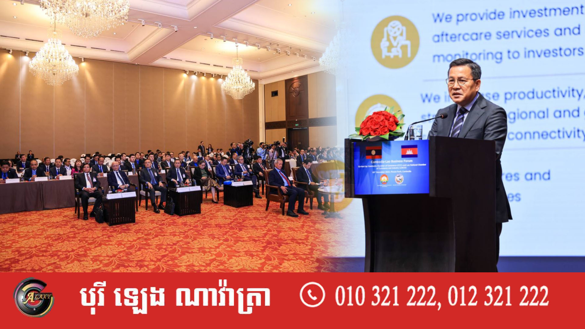 សភាពាណិជ្ជកម្មកម្ពុជា និងសភាពាណិជ្ជកម្ម និងឧស្សាហកម្មឡាវ បានសហការរៀបចំវេទិកាធុរកិច្ចកម្ពុជា-ឡាវសំដៅធ្វើសន្ធានកម្មរវាងវិនិយោគិនក្នុងស្រុក និងវិនិយោគិនឡាវ និងបញ្ជ្រាបការឈ្វេងយល់អំពីបច្ចុប្បន្នភាពថ្មីនៃសក្តានុពល និងបរិយាកាសវិនិយោគនៅកម្ពុជា កាលពីថ្ងៃទី៥ ខែធ្នូ ឆ្នាំ២០២៤។
