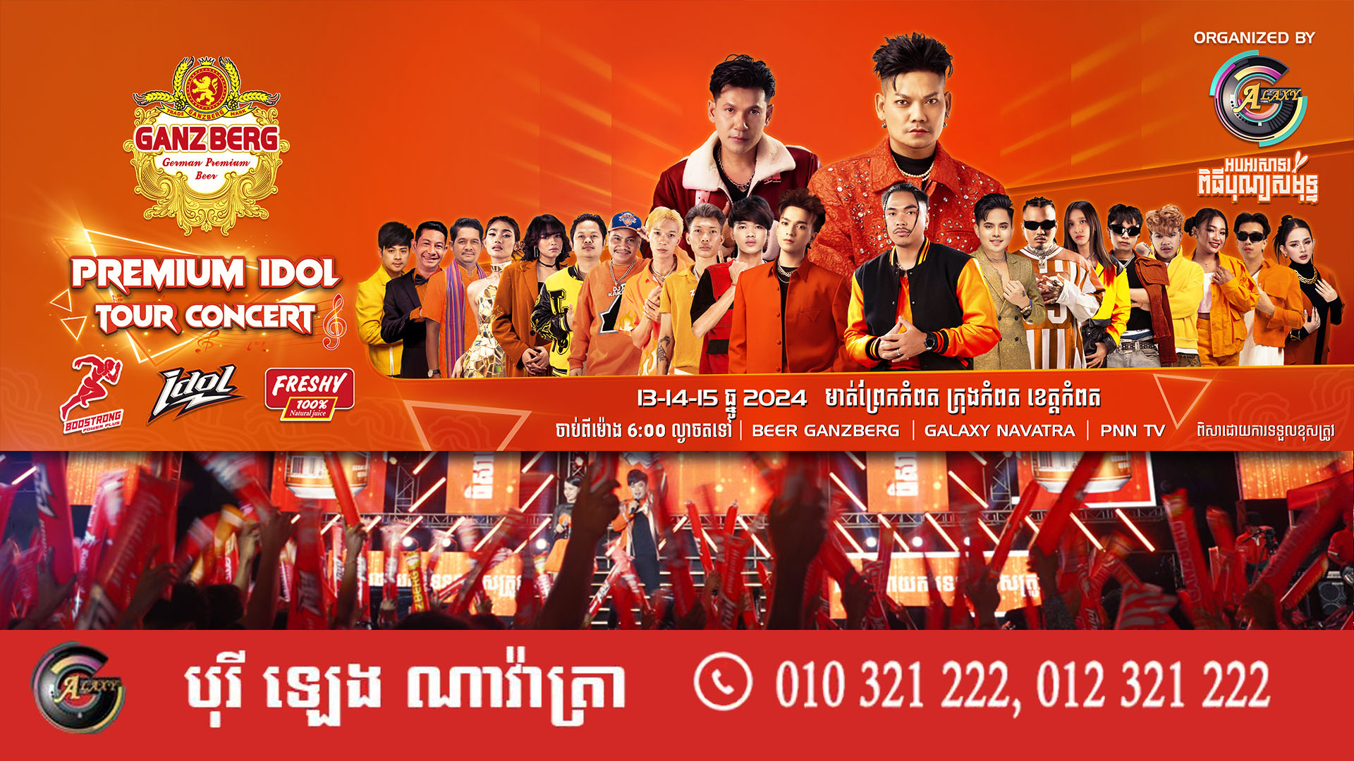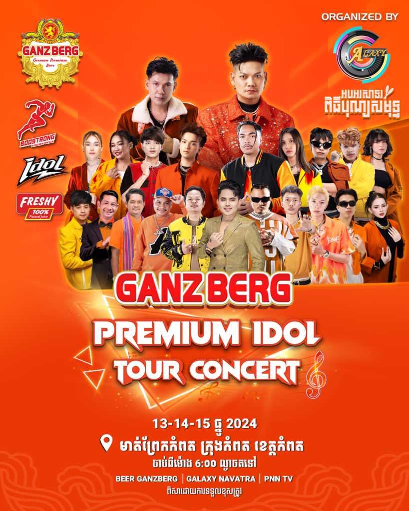 មហាព្រឹត្តការណ៍ប្រគំតន្រ្តីGanzberg Premium Idol Tour Concert សហការជាមួយផលិតកម្មដ៏ធំ Galaxy Navatra បានធ្វើដំណើរមកដល់ខេត្តកំពត ហើយនៅសប្ដាហ៍នេះ ដើម្បីអបអរសាទរ ពិធីបុណ្យសមុទ្រលើកទី១១ ដោយ ការប្រគំតន្ត្រីដ៏ធំសម្បើមមួយនេះ នឹងនាំយកកំពូលតារាចម្រៀងប្រចាំប្រទេសជាច្រើនដួង មកអង្រួនឆាក បង្កើតទស្សនីយភាពដ៏អស្ចារ្យ បម្រើអារម្មណ៍ពុកម៉ែបងប្អូន អាចចូលរួមទទួលយកភាពសប្បាយរីករាយ និងរាំលេងកម្សាន្ត ជាមួយនឹង ចង្វាក់ភ្លេងគ្រប់ស្ទាយ ព្រមទាំងបានជួបជាមួយអាយដលជាច្រើនដួងផងដែរ ។