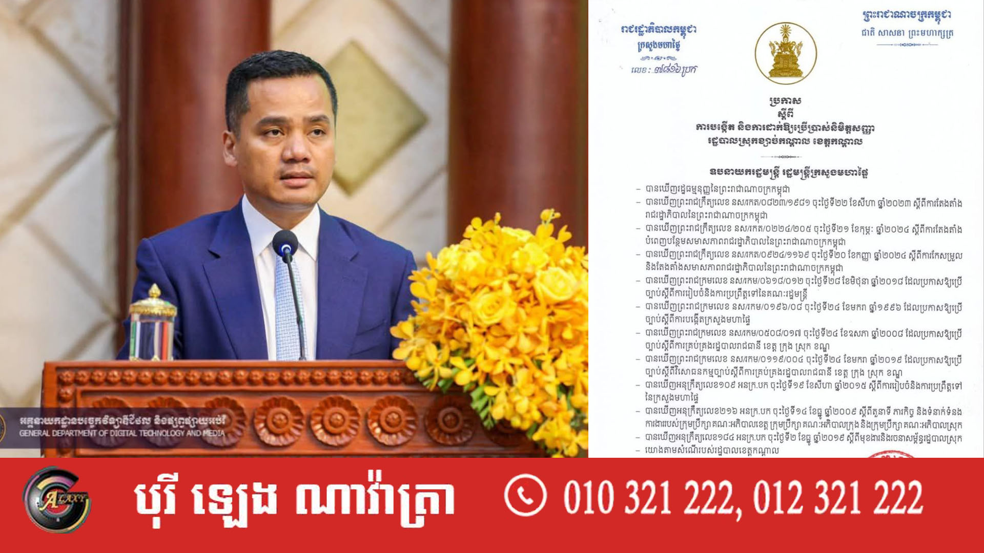 ក្រសួងមហាផ្ទៃ កាលពីថ្ងៃទី១៩ ខែធ្នូ ឆ្នាំ២០២៤ បានចេញប្រកាស ស្ដីពីការបង្កើត និងដាក់ឱ្យប្រើប្រាស់និមិត្តសញ្ញារដ្ឋបាលក្រុង ស្រុកទាំង១៣ នៃខេត្តកណ្ដាល។