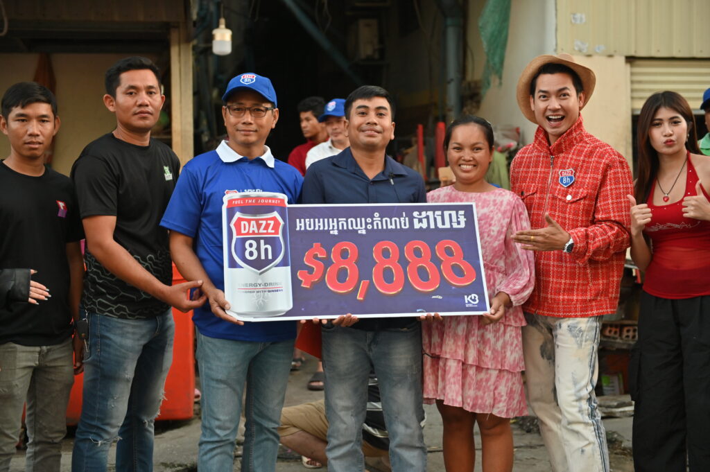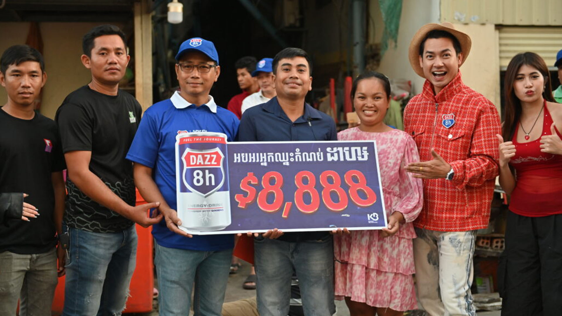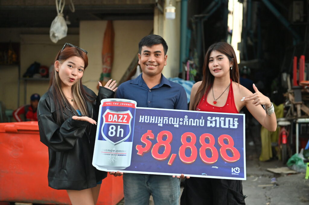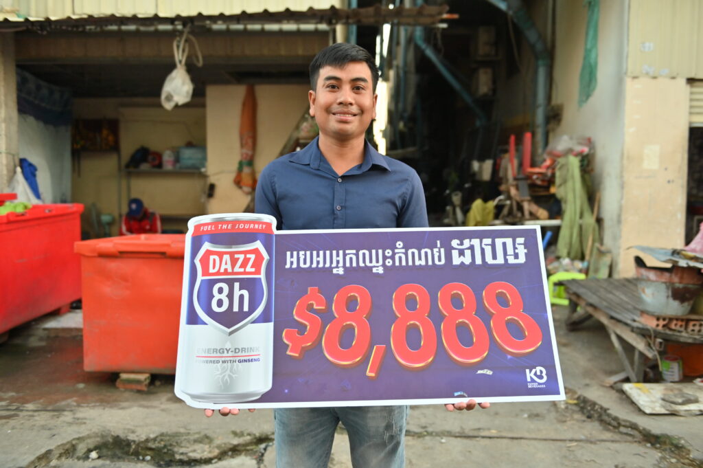 (ភ្នំពេញ)៖ លួចយកលាក់មិនឱ្យប្រពន្ធដឹង ពេលគាស់ឈ្នះលុយ 8,888$ ពីភេសជ្ជៈប៉ូវកម្លាំង ដាស្ស។ លាភធំរត់រកអ្នករាសីខ្ពស់ ទោះមិនបានចូលរួមផ្ទាល់កម្មវិធីគាស់កំណប់ដាស្ស 8,888$ នៅកំបូល ក៏គាស់ត្រូវក្រវិលកំប៉ុងរង្វាន់ ដាស្ស 8h ស្មើ 8,888$ នៅផ្ទះដែរ។ ប្តីមហាសំណាងរូបនេះ មានឈ្មោះ ញឹម សារឹម មុខរបរជាអ្នកដឹកទឹកកក រស់នៅភ្នំពេញ បាននិយាយថា ដោយចង់ពញ្ញាក់អារម្មណ៍ប្រពន្ធ គាត់ក៏យកក្រវិលកំប៉ុងដែលមាន Logo DAZZ 8h ស្មើនឹងរង្វាន់ទឹកប្រាក់ចំនួន 8,888$ ទៅលាក់ទុកក្នុងទូ យប់ឡើងចាំយកមក Surprise ប្រពន្ធ។