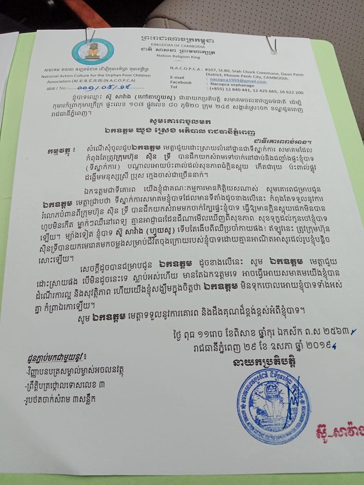 អតីតតារាកំប្លែងជើងចាស់ និងជាប្រធានអង្គការ N.A.C.A លោក ស៊ូ សាវ៉ាង ហៅ តា ហ៊្វុយហ្សូ បានថ្លែងឲ្យដឹងថា នៅជុំវិញស្នាក់ការអង្គការរបស់លោក ពោរពេញដោយពំនូកសំរាមជាច្រើនឆ្នាំមកហើយ ដោយសារតែក្រុមហ៊ុន ស៊ីនទ្រីដឹកមកចាក់នៅទីនោះ ធ្វើឲ្យឲ្យមានជិះក្លិនស្អិតពិបាកដកដង្ហើម គួបផ្សំលោកមានជំងឺប្រចាំកាយផងនោះ បានធ្លាក់ខ្លួនឈឺ ហើយក្មេងៗ ក៏មានធ្លាក់ខ្លួនឈឺមួយចំនួនផងដែរ ។ ករណីនេះ លោកបានសរសេរលិខិតទៅសាលាក្រុងឲ្យជួយអន្តរាគមន៍ ប៉ុន្តែហាក់ដូចមិនមានប្រសិទ្ធភាពសោះ។