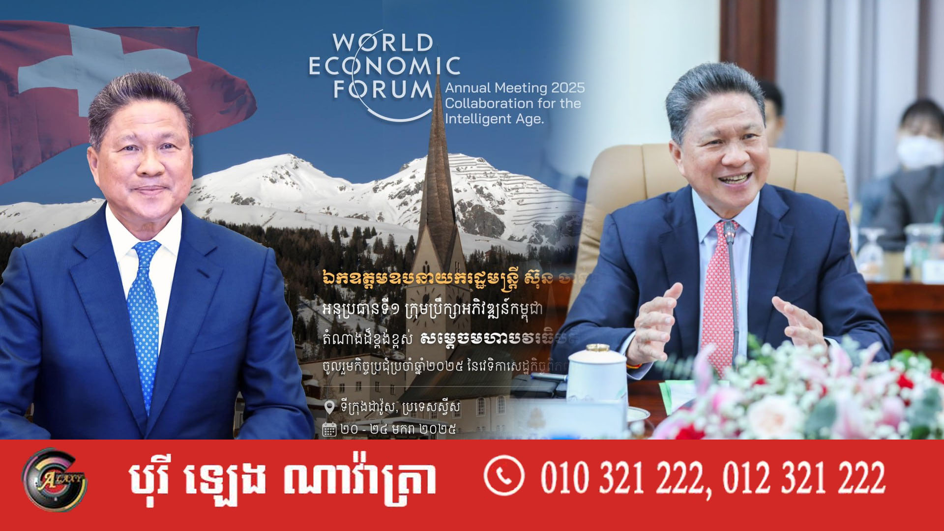 សូមរម្លឹកដែរថា ជាការកត់សម្គាល់ កាលពីដើមឆ្នាំ២០២៤ សម្តេចធិបតី ហ៊ុន ម៉ាណែត នាយករដ្ឋមន្ត្រីកម្ពុជា ធ្លាប់បានអញ្ជើញចូលរួមកិច្ចប្រជុំប្រចាំឆ្នាំរបស់វេទិកាសេដ្ឋកិច្ចពិភពលោកនេះម្ដងរួចមកហើយ នៅទីក្រុងដាវ៉ូស-ក្លូស្ទ័រ ប្រទេសស្វីស៕ អត្ថបទ៖ ហ្សាលីន