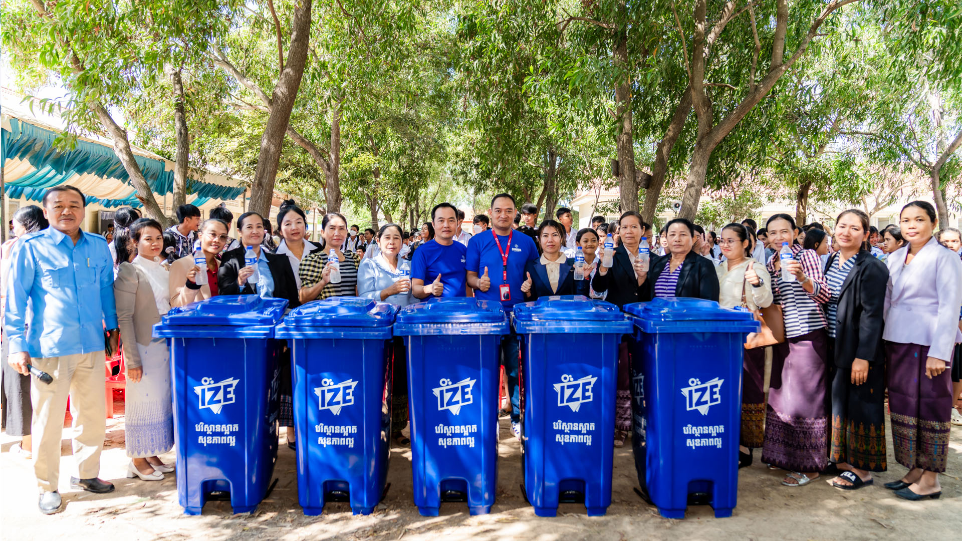 លើកកម្ពស់កាយវិការថែរក្សាបរិស្ថានស្អាត ខ្មែរ ប៊ែវើរីជីស ឧបត្ថម្ភធុងសំរាមចំនួន ១៣៧ ធុង ជូនដល់ ២៣ សាលារៀន