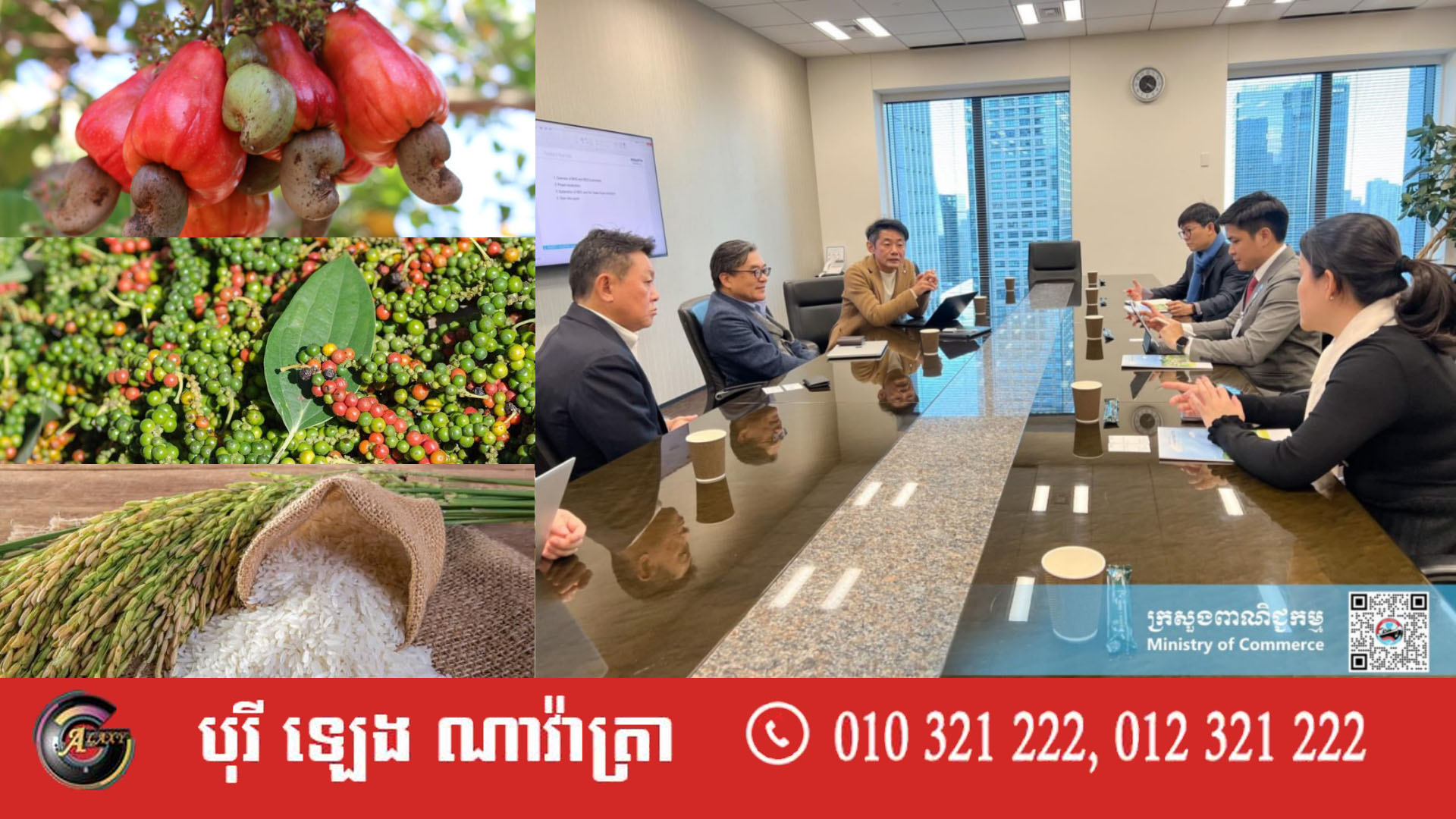 ក្រសួងពាណិជ្ជកម្មកម្ពុជា និងក្រុមហ៊ុន MIRARTH Holdings របស់ជប៉ុន កំពុងរួមគ្នាជំរុញការនាំចេញផលិតផលកសិកម្មសំខាន់ៗ ចំនួន៣មុខ ដូចជា អង្ករ ម្រេច និងគ្រាប់ស្វាយចន្ទីរបស់កម្ពុជាទៅកាន់ទីផ្សារជប៉ុន។