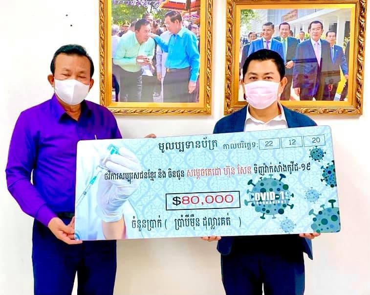 ឯកឧត្តម មានប្រសាសន៏ថា ខ្ញុំពិតជារំភើបខ្លាំងណាស់ចំពោះទឹកចិត្តសប្បុរផុសចេញពីបេះដូងស្មោះសរពិតៗរបស់បងប្អូនប្រជាពលរដ្ឋ ពាណិជ្ជករខ្មែរ ពាណិជ្ជករចិន ព្រមទាំងបងប្អូនក្នុងបណ្តាញសង្គម Facebook ដែលបង្ហាញពីការរួបរួមនិងសាមគ្គីភាពក្នុងបរិច្ចាគថវិកាផ្ទាល់ខ្លួនម្នាក់បន្តិចៗរហូតបាន $80,000 (ប្រាំបីម៉ឺនដុល្លារ ) ចូលរួមជាមួយ សម្តេចតេជោ ហ៊ុន សែន នាយករដ្ឋមន្រ្តី ដើម្បីទិញវ៉ាក់សាំងកូវីដ-១៩ ចាក់ការពារពលរដ្ឋជាទីគោរពស្រឡាញ់នៅទូទាំងប្រទេស។ សម្តេចតេជោនឹងផ្តល់ការចាក់វាក់សាំងនេះជូនទៅពលរដ្ឋដោយគ្មានការរើសអើងឡើយ។